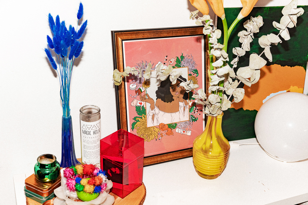I really like fun, bright colors on my nails. For a while I was doing yellow nails, and now I’m really into this purple-y blue. I go wherever—literally whatever cheapy place is just there. I have mixed experiences everywhere I go. But I am obsessed with massage—there’s a place called Renew on West 8th, and it’s heaven. I go there all the time because it’s so cheap, like $40 for an hour.