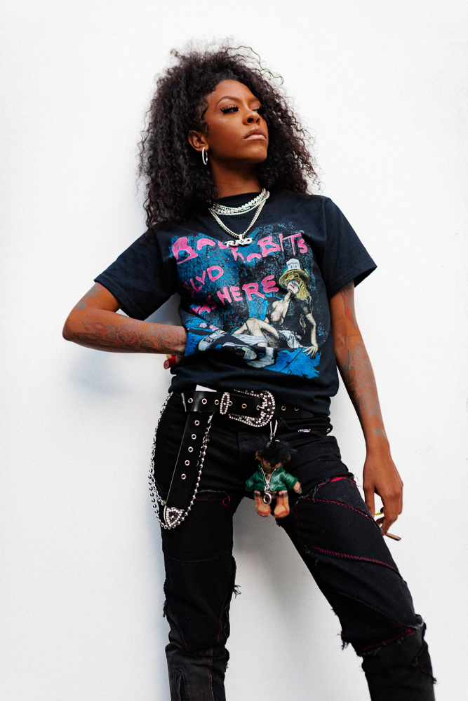 “I got into music from hanging around boys that couldn't rap. I knew I could rap better than they could, so I did. I’m still always being compared to this guy or that guy, and being called a female version of a guy. I'm a female version of Uzi, Yachty—fuck. It's ridiculous. I don’t think I ever got criticized for being too girly. Actually, I think my shit wasn’t girly enough. For a lot of the early shows, I would just ask for quick makeup. I was the type of bitch to say, "Can you just give me brows?" Some people ask why I don’t wear heels on stage. People have definitely asked me why I wear jeans on stage. It’s fucking weird that in the time we're in, a woman can't wear jeans on stage without someone saying she doesn’t care. Guys wear hoodies and jeans every show. It’s just clothes.