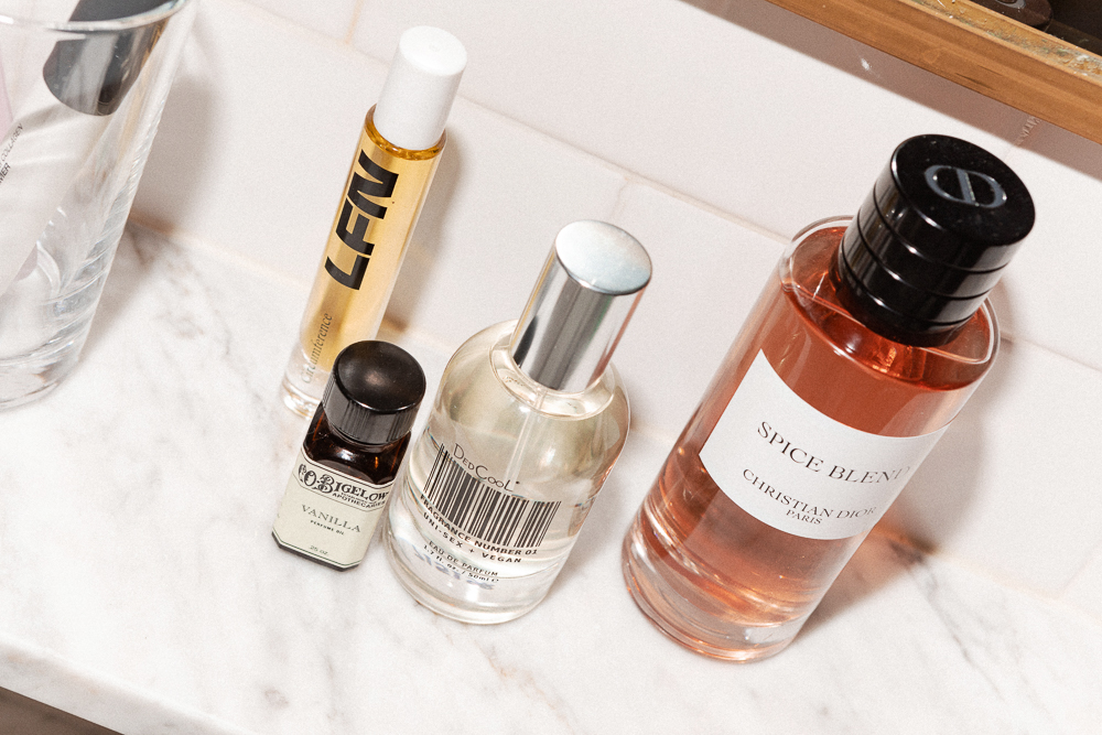 This is so polarizing, but I like when you can smell someone when they walk by. Obviously if it’s an unpleasant smell it’s a different story, but it’s nice when someone’s scent is their thing. I really like the smell of suntan stuff—my Native deodorant is coconut vanilla, and I love that kind of beachy smell. If Corpus deodorant made a fragrance version of their Cedar Flora deodorant, I would totally wear that, too. I have the Dedcool fragrance with me, 01. Probably just for nostalgia, my favorite fragrance is Hypnotic Poison. Sometimes I like to smell cheap, like Tom Ford Black Orchid, or just vanilla—cheap in a good way. If that’s your style, it’s called VSCO, and it’s an insult. I shop at Brandy Melville, and vanilla is kind of the fragrance version of that."