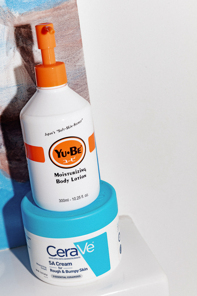 I use a spray hand sanitizer—either Dr. Bronner's Organic Lavender or EO's Lavender—on my phone every night before I go to bed because our phones are fucking disgusting. I keep it on my bedside table so I don't forget. To shower, I just use Dr. Bronner's, and my body lotion is from Yu-Be. It smells medicinal, but it goes away really fast. I've used Cerave’s SA Cream for Rough and Bumpy Skin. I don't have rough and bumpy skin, but I want it to be smoother, like a dolphin.