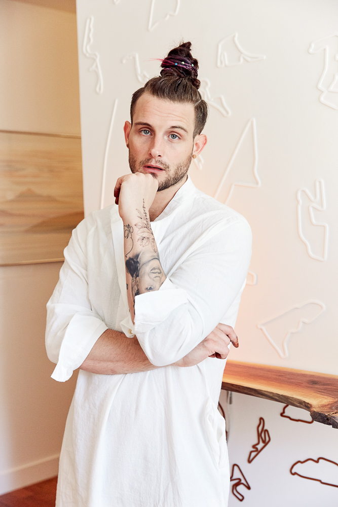 “I grew up just north of Chicago in a big Italian family—I have one brother, a half sister, a half brother, and two step brothers. I also have a bunch of cousins who were like my brothers and sisters, you know? We all lived on the same block. My grandma would take me to flea markets, auctions, and estate sales, and those became a love of mine. I have an uncle who was a raw foodist for 30 years, and he would assign me books to read, and meditations to do, and take me to conferences all over the midwest. But there were no artists or queer people in the family… that we know of. My whole family played hockey, so I played hockey—and we owned a few bars, so I basically grew up in a bar. My family is loud, and obnoxious, and passionate, and every conversation we ever have goes to level 100 immediately. The first word I ever learned was ‘fuck.’ When I was in third or fourth grade, my mom made us audition for The Wizard of Oz. I got cast as a munchkin, and I immediately knew acting was what I was going to do for the rest of my life. I quit hockey after that. There were a lot of screaming matches—the majority of my family never thought I’d be able to be an actor. But I always thought that if it was one in a million, I’d be that one.