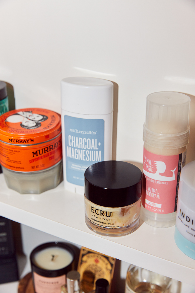 I’m obsessed with brushing my teeth—I do it four to five times a day. I love the way it feels, but my dentist is really mad at me because I’m destroying my gums. Whatever, there’s surgery for that. We use baking soda toothpaste. For deodorant, I’m all about charcoal—I don’t put anything under my arms that’s not charcoal. This Schmidt’s one is fantastic. When I’m in the shower I wash my body with bar soap—it’s organic, and actually from Cannuka, too. Tiger Balm is my go-to for everything if I’m in a tiny bit of pain. Oh, and Lola makes great condoms.