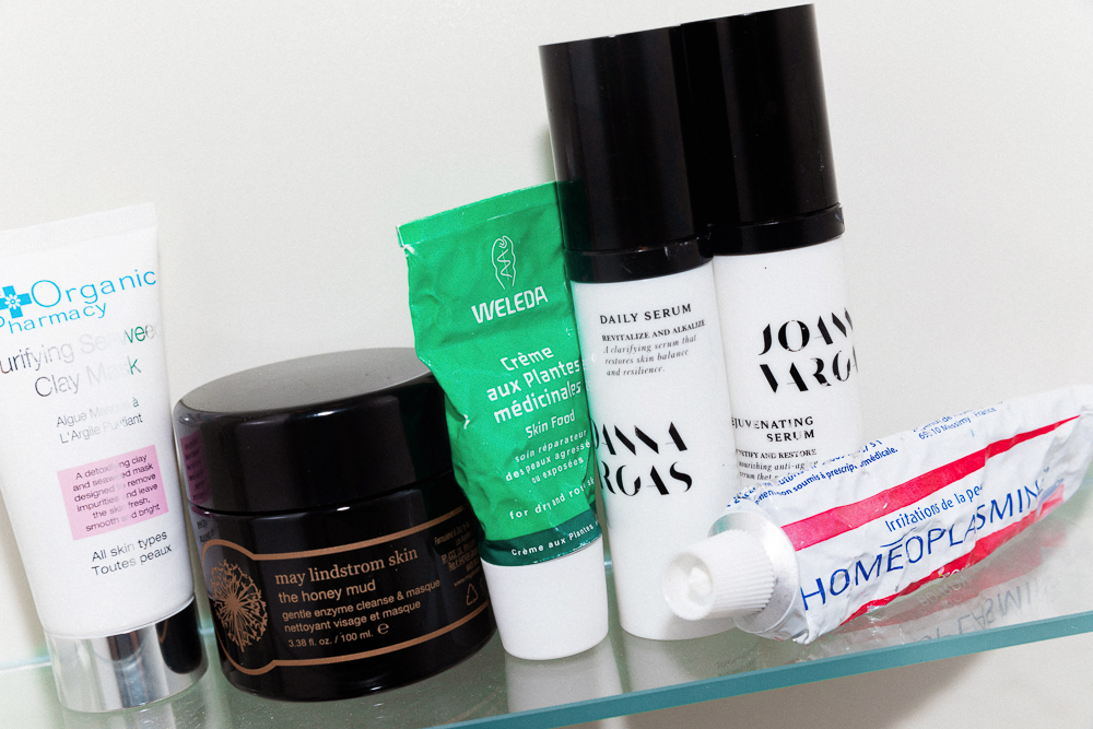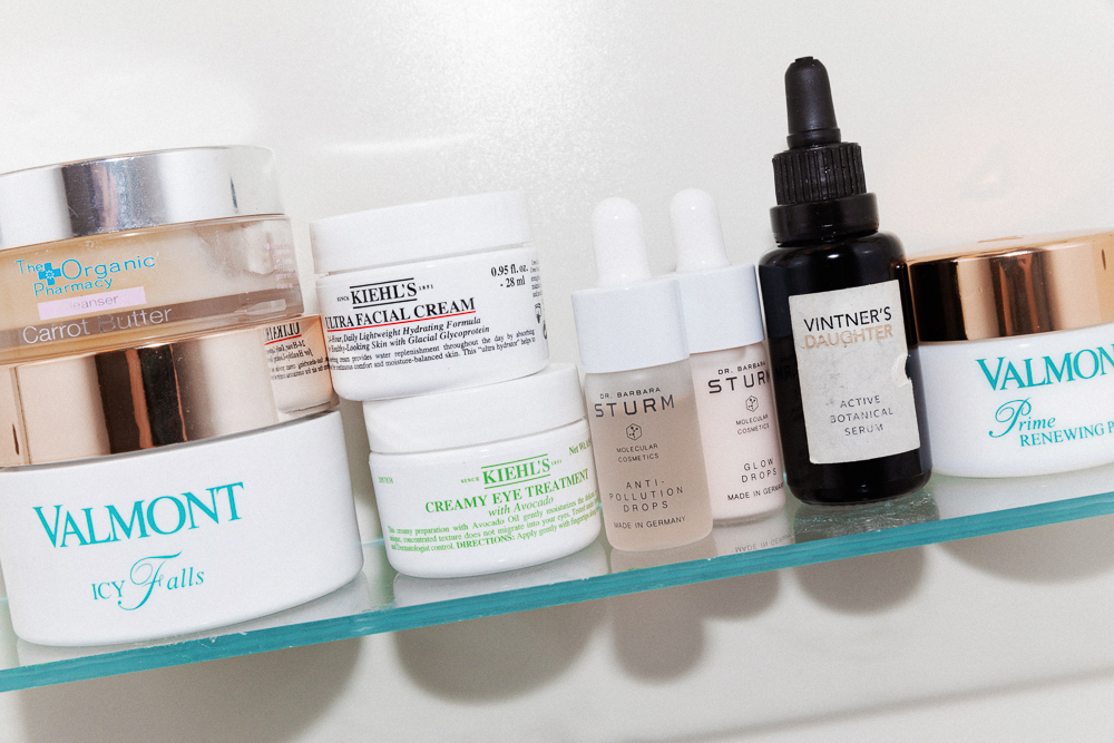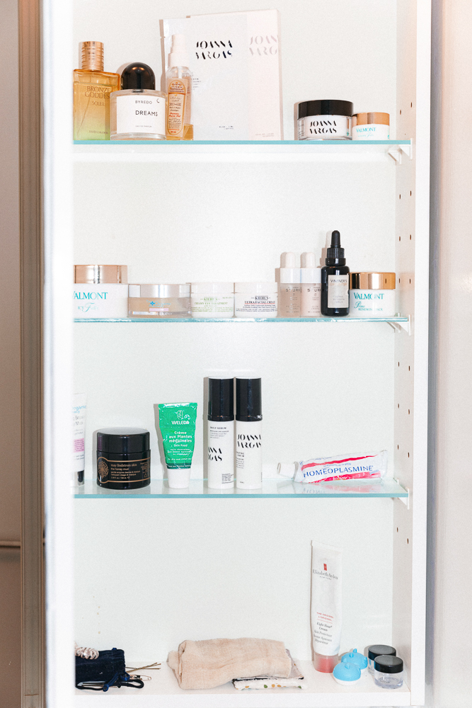 I’m obsessed with Joanna Vargas serums, and I go to her spa for facials maybe four times a year. She also makes the best face masks—I love the one called Euphoria, and the Exfoliating Mask. I’ll use that one when I have a breakout coming on. You let it sit on your face for, I don’t know, 20 minutes, and when you remove it, any pimples you had under the surface are white and ready to explode. I have her Rejuvenating Serum, which has argan oil, but when I use that one I use it alone. It doesn’t mix well with creams. The Daily Serum I can mix with my cream—right now I’m using the Ultra Facial Cream from Kiehl’s and the Avocado Eye Treatment. They’re very light, penetrate super quickly, and don’t smell so much.