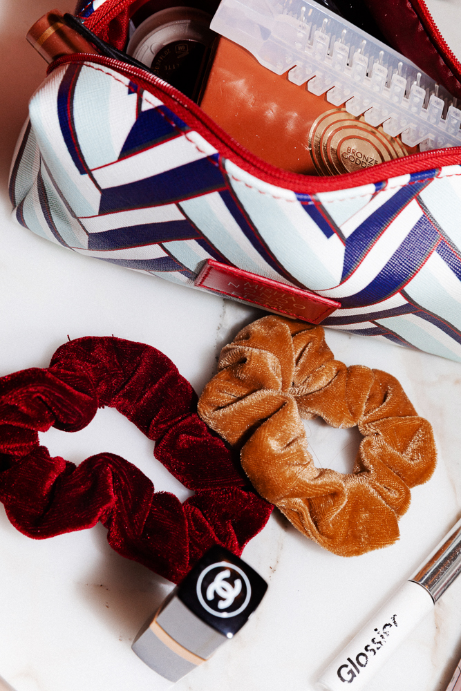 For fragrance, I’m obsessed with Mojave Ghost from Byredo. I have the rollerball, so I put it right behind my ears. Back in the day I wore those green tea scents, and for many years I wore Estée Lauder’s Bronze Goddess. That perfume was everything. My favorite toothpaste is the Desert Essence Tea Tree Oil one, but I have so many travel-sized toothpastes because they give them to me on the plane and I hate to waste them. My boyfriend makes fun of me that there’s no space anywhere in the bathroom, but I’m not going to throw it out after using it once!
