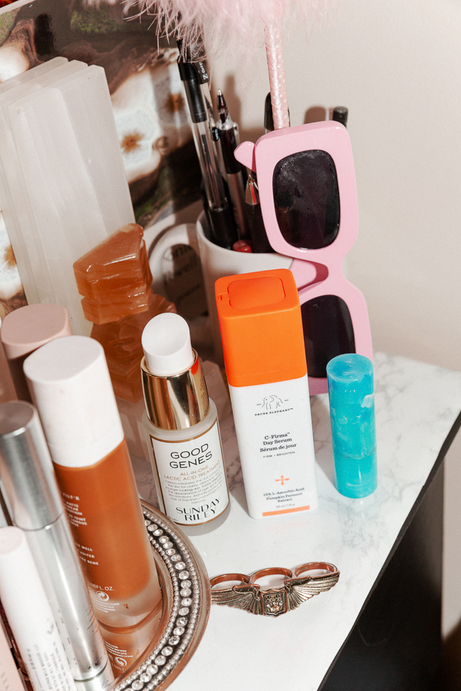 I went to the dermatologist and she read me for filth. She said, ‘You have dermatitis, and acne, and discoloration,’ and she made me buy $100 worth of ointments. She really did that. All that is to say, I’m in the midst of a skincare transition. Really, I want to have the face of a baby—and that’s a lot to ask. I’ve been cooling on using the Kiehl’s Midnight Recovery Cleansing Oil ever since that dermatologist said I was ugly, and I usually wash my face with Cetaphil. Then I’ll do the Kiehl’s Ultra Facial Toner. I like to look at the cotton pad and say to myself, ‘Wow, I’m a dirty girl.’ After that I use the Fresh Black Tea Essence, which I found by Googling, ‘How do I look like a googoo gaga motherfucker.’ Does it do anything? I don’t know. But it smells great! Then I use this Drunk Elephant C-Firma Serum that I keep in the refrigerator, but again, I don’t know what it does. And then I usually use the Kiehl’s Ultra Facial Moisturizer with SPF 30. I’m African—I don’t think my parents have ever put on sunscreen, and the idea of it is very foreign to them, but they look nine. My parents are nine years old. I’m open to the idea of sunscreen because I want to look four. I’m not about to get played by the sun.