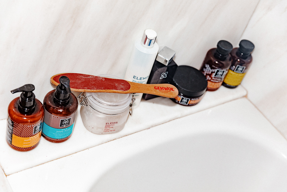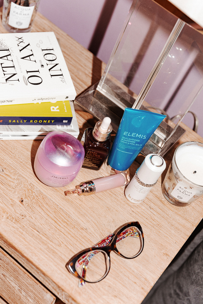 Tom Ford Soleil Blanc is my signature fragrance—in summer I’m always wearing that one, and in winter I also like the Rouge Baccarat from Maison Kurkdjian. After work, because I always finish late, I take a very long, fragrant bubble bath. It solves everything. I light a candle, usually Diptyque. Narguilé is fantastic. Then, for the bath, I use either the lavender series from Apivita, which makes me feel so good and calm, or the Elemis Sea Lavender and Samphire Shower Milk. I also find manicures very relaxing. I go once a week, to the same spa that I get my hair done. I’m constantly moisturizing my hands and I really like to have beautiful nails.
