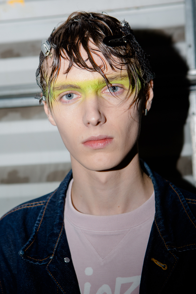 On the other hand, for two Dior shows I’ve been to this year, I’ve seen lots of hats and lots of eye makeup. So much that it really made me think: what’s the trick to making the two work in symbiosis? At Dior Men’s Pre-Fall show this week, a handful of models, outfitted in bucket and mariner’s hats with a streetwear bent, walked the runway with a distinctive bright green streak. Peter Philips, Dior Beauty’s Creative and Image Director, said he was inspired by the show’s set colors and also a kind of "cyber surfer," as he put it. Truthfully, having just watched an episode of Watchmen the day before, the makeup design reminded me of some of the show’s masked hero disguises. But you know what they say about inspiration: you can find it anywhere.