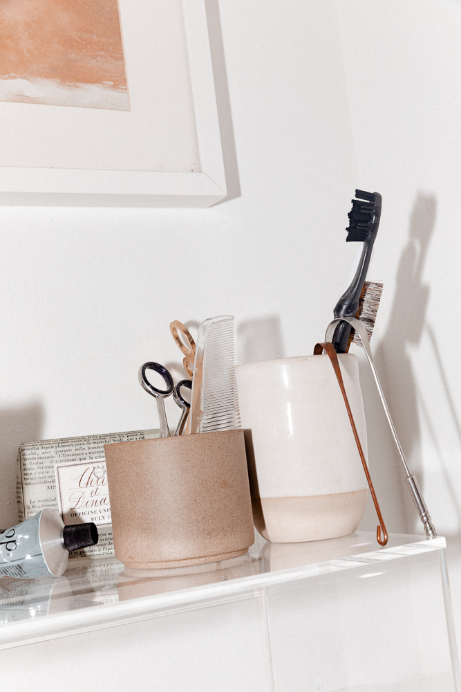 DP: I use the Ouai styling cream right when I get out of the shower, and then when I want to wear my hair in a part I use the Ouai matte stuff. To add texture to my hair, I use Kiehl's Texturizing Clay. My hair is too fluffy if I don't put anything on. One of our friend's was losing their hair and they recommended this supplement called Nutrafol to me. It's expensive, but it's really incredible. They market it as a hair supplement but it's also an overall body supplement.