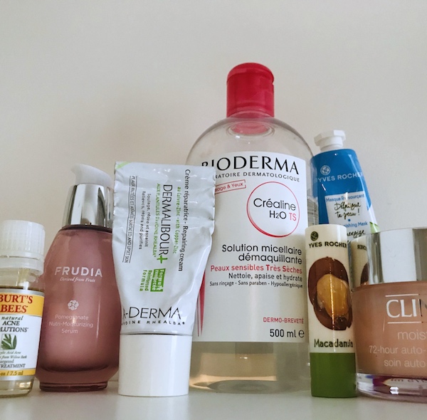 My approach to beauty is very simple. I have dry, sensitive skin, so my main focus is to keep it hydrated. And once I find a product that my skin likes, I stay loyal. However, the pharmacies in Paris are amazing and since moving here I love going to them and buying tons of stuff. One of the most important products that I use is Bioderma’s Micellar Water. I love it because it cleans my skin without drying it. I also love that it’s so easy to use, very practical. Another product that helps with extra hydration when the weather is too cold is A-derma’s Repairing Cream. I started using it after an allergic reaction to a product and now I always keep it in my cabinet. It’s very thick and extra hydrating. And I always have a little jar with Vaseline and sugar on hand to scrub my lips whenever they’re dry or need a little pick-me-up.