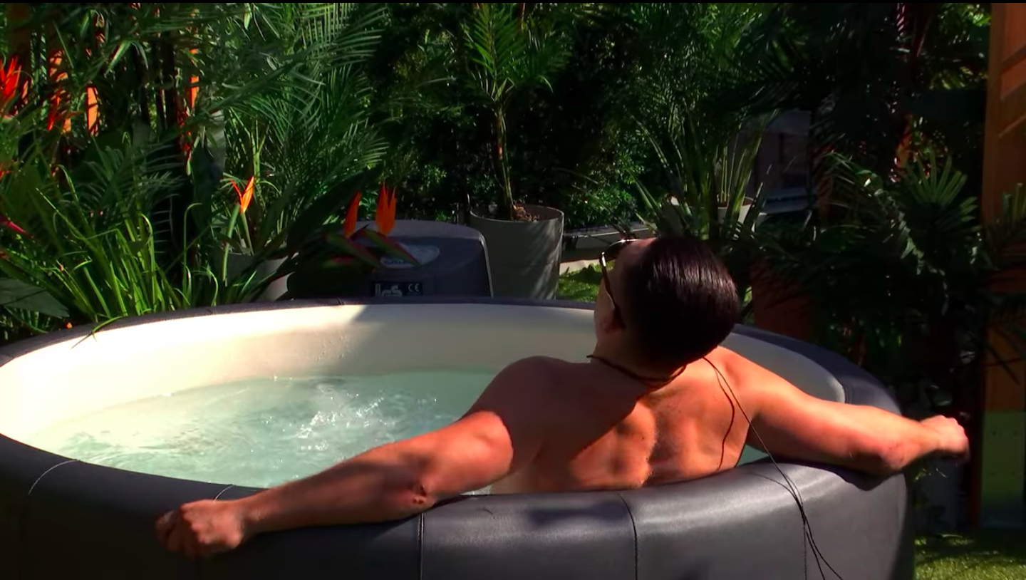 Notably missing from the lineup is sunscreen—perhaps he keeps it by the hot tub on the roof?