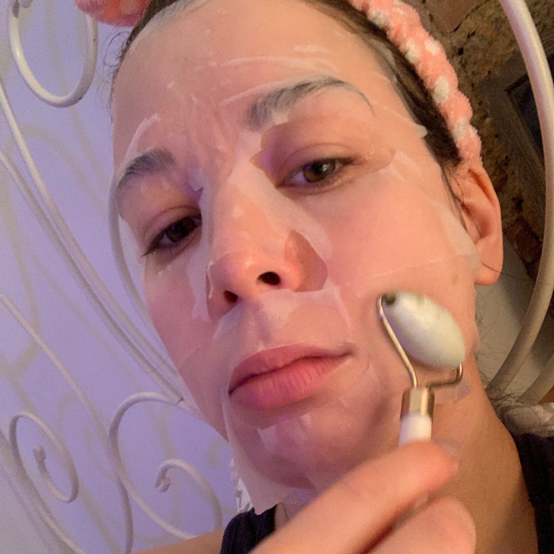 Nighttime is when I do my real skincare routine. I start with Milky Jelly Cleanser, which takes off any makeup I’m wearing and doesn’t make my skin feel tight. But my favorite part of my entire day is when I use my P50 1970. I love her. She smells disgusting but I used to have cystic acne on my chin, and since using it regularly my breakouts have really decreased. Then I’ll choose a serum based on what my skin needs—lately I’ve been loving the Timeless Skincare Vitamin C+E and Ferulic Acid, which I picked up at oo35mm, but I have Mad Hippie’s vitamin C and Glossier Super Bounce on hand too. I use Bubblewrap under my eyes, and finish with the CosRX Hyaluronic Acid Intensive Cream. It’s so soothing, and particularly good in the wintertime. Then, when everything dries a little, I’ll use the Mario Badescu drying lotion on any zits that don’t have a head yet, and a CosRX Pimple Patch on any that do.