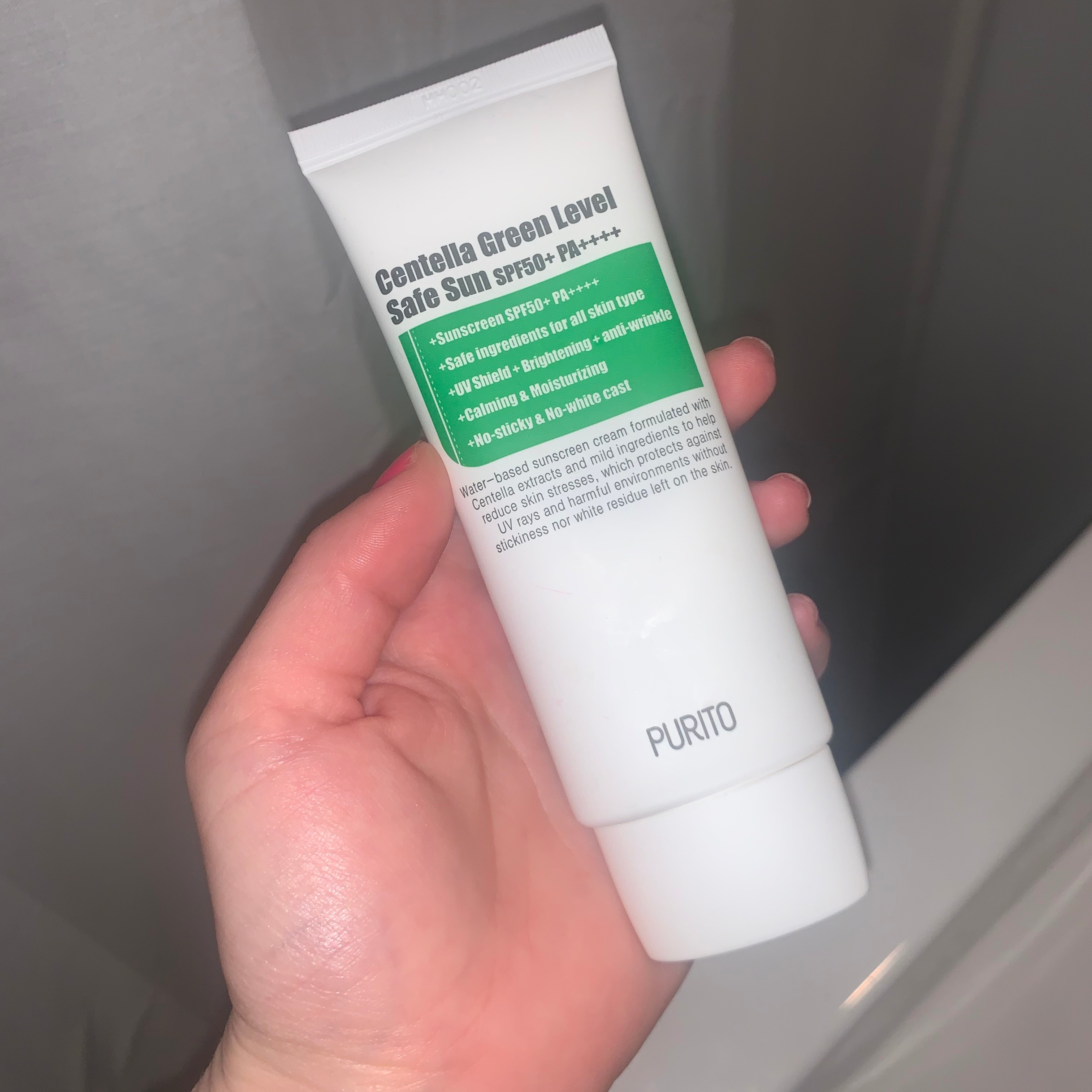 When I first started at Glossier, I would buy whatever anyone who walked in with glowy skin used. It’s great to get recommendations from people, but I’ve since learned that being consistent with a routine is what matters most. I find I feel my best when I’m taking care of my skin and trying not to pick. I’m super lazy in the morning and I cannot wake up early to save my life, so I usually just spritz rosewater and use Glossier Priming Moisturizer Rich, which I love because it’s thick but not sticky, and SPF. I’ve worn sunscreen every single day since I was in fifth grade, because that’s when my mom started bribing me to do so, and Purito Centella Green Level SPF 50 is everything to me. I constantly repurchase it because I like the way it makes my skin feel and look—it has niacinamide in it, which helps control little breakouts.