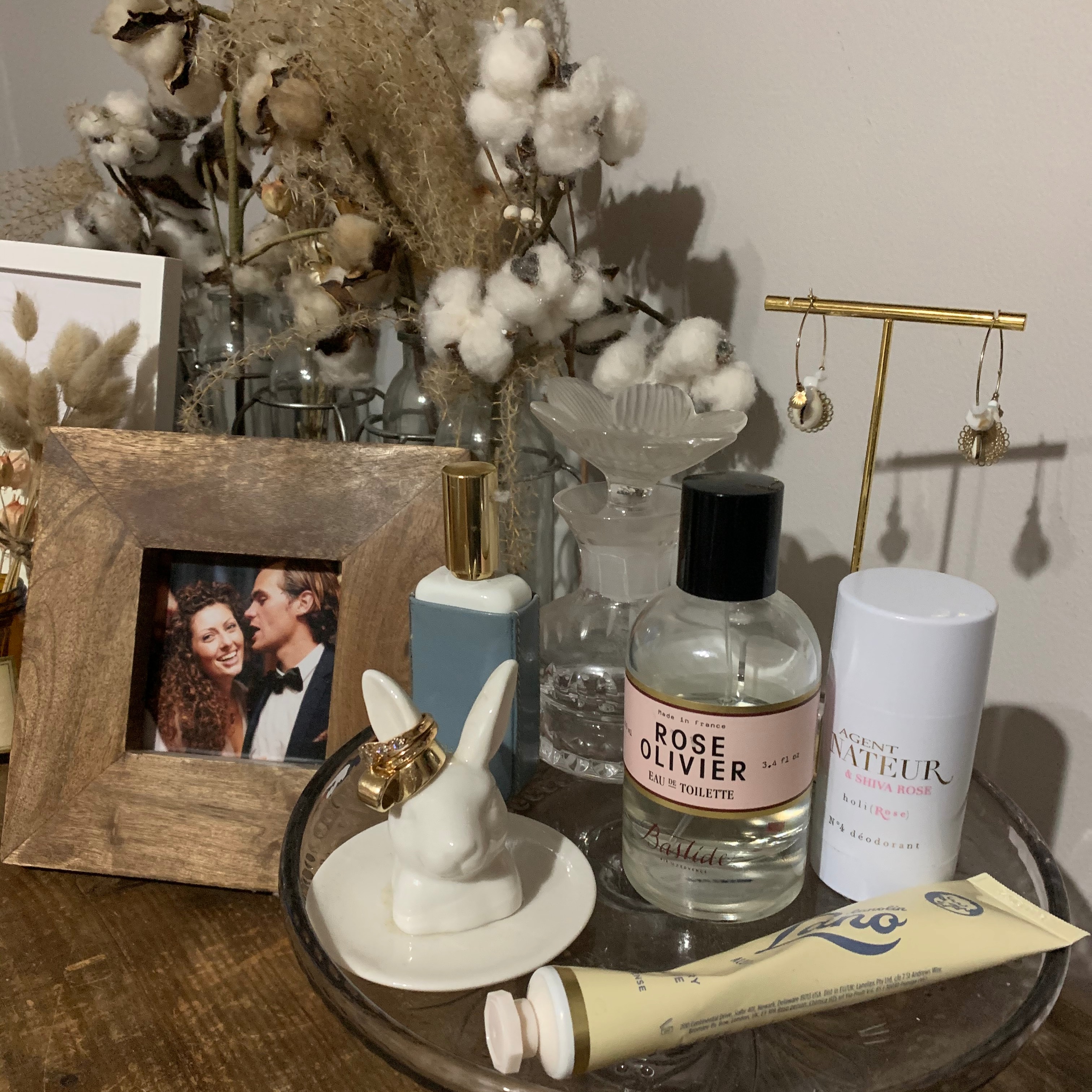 I don’t usually have time for an eight-step routine, so for skincare, I opt for only the necessities. I use Estée Lauder Perfectly Clean Crème Cleanser as my everyday face wash, and have Klorane’s Floral Eye Makeup Remover on hand as well. I’ve been using it for years, and it’s a staple. Eminence Organics is an incredible line of skincare products I discovered in Vancouver, and I’m absolutely obsessed with their Rosehip Triple C&E Firming Oil. I apply that all over, and once it’s absorbed, I use the Hydra Eclat Serum and Cellularose Liftessence Daily Cream from By Terry. On my body, I use the Agent Nateur Holi(Rose) deodorant which pairs well with my Bastide Rose Olivier fragrance. I also love their Figue D’Ete hand and body lotion, which is hydrating and not too strongly scented.