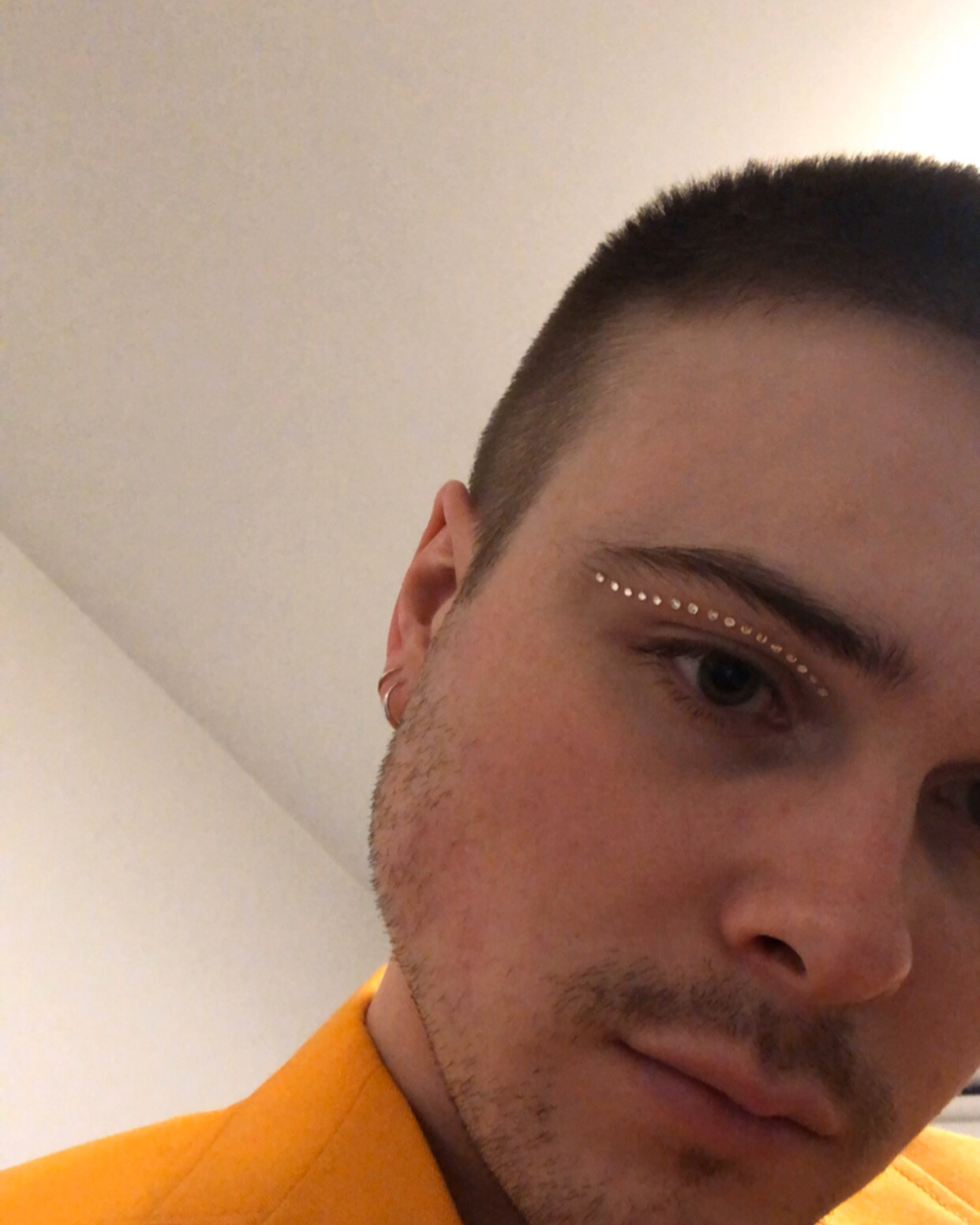 My creative expression always seems to manifest through beauty. I'm originally from the Arizona desert, and from a very early age I would sneak into my mom's makeup bag to put on fierce looks, ask for my nails to be painted, and give my boy cousins drag looks in the summertime. When I got older I went to a very conservative, religious university, and became hyper-aware of anything that would label me as queer. It was a means of survival. I got into skincare and would slowly sneak in makeup I could use without anyone really noticing, like brow gel. And then eventually I left that school and re-learned how to live and express myself freely.