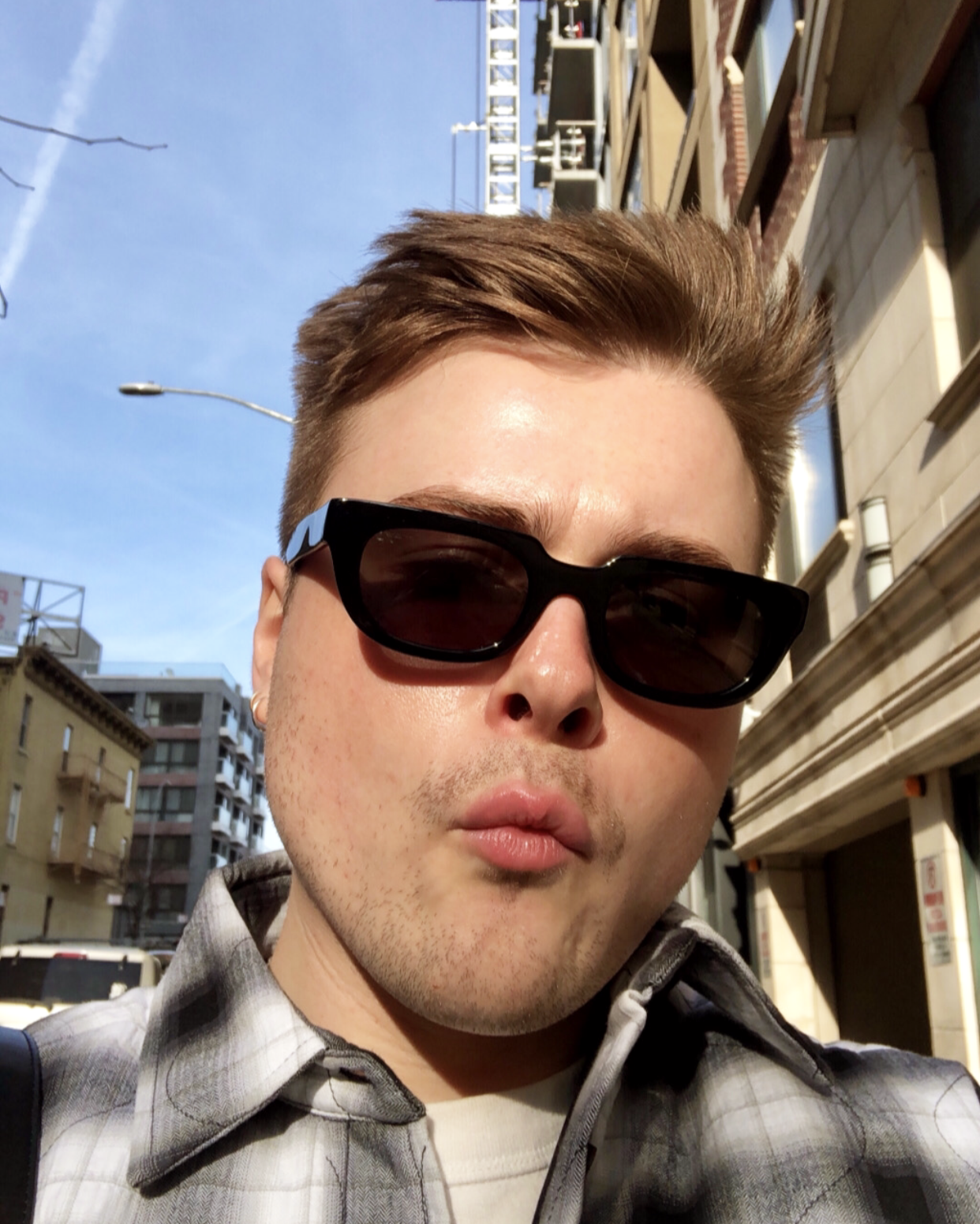 “Hiiiiiii! I'm Sam Sonntag (@samsonntag), a graphic designer and art director at Glossier. It’s not lost on me that my day-to-day revolves around making decisions that influence how people consume and understand beauty. Sometimes they’re big ones, like choosing which face will appear on a billboard, or small ones, like placing Glossier's tiny happy face on the back of a bottle. I have so many opportunities to increase diverse representation in beauty, incorporate unexpected humor, or even just help people better understand their skincare needs. I can make an impact in someone's everyday life, and I find that aspect of the job really exciting and motivating.