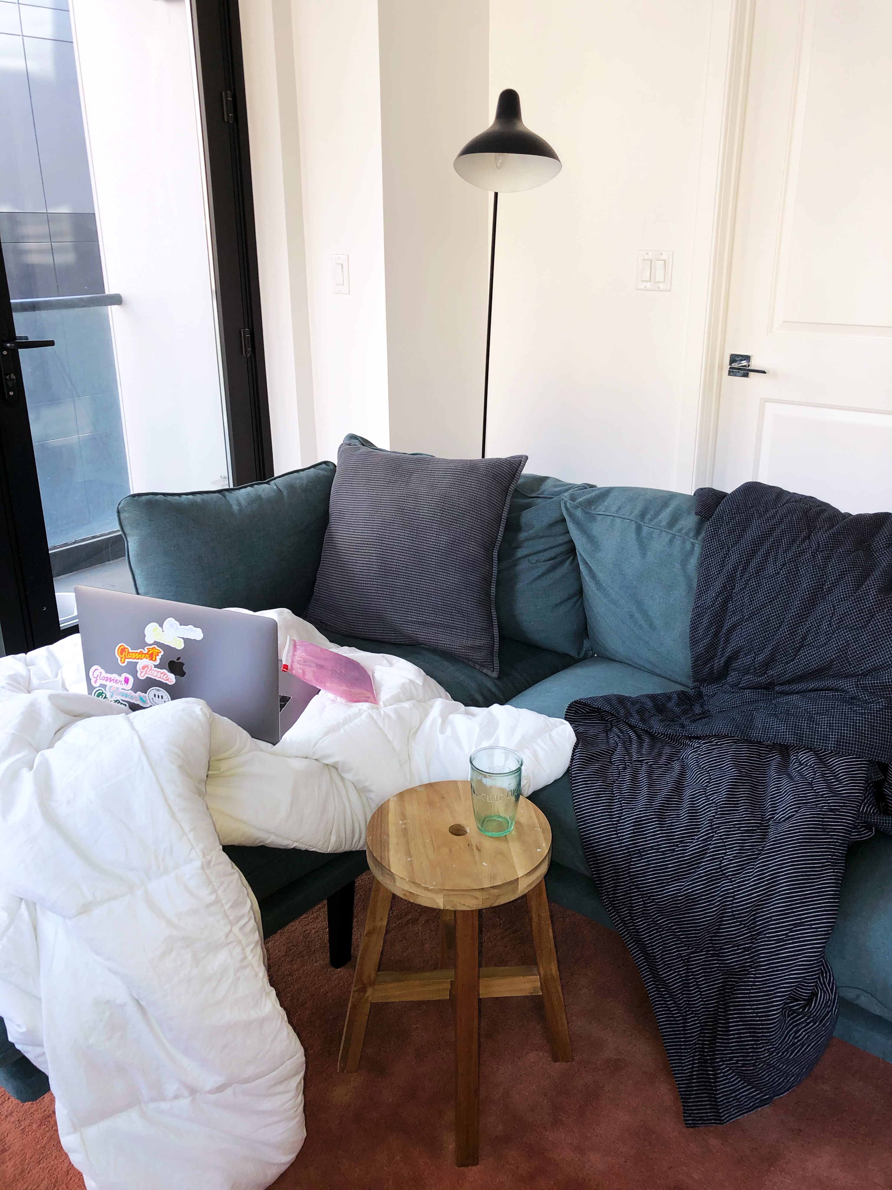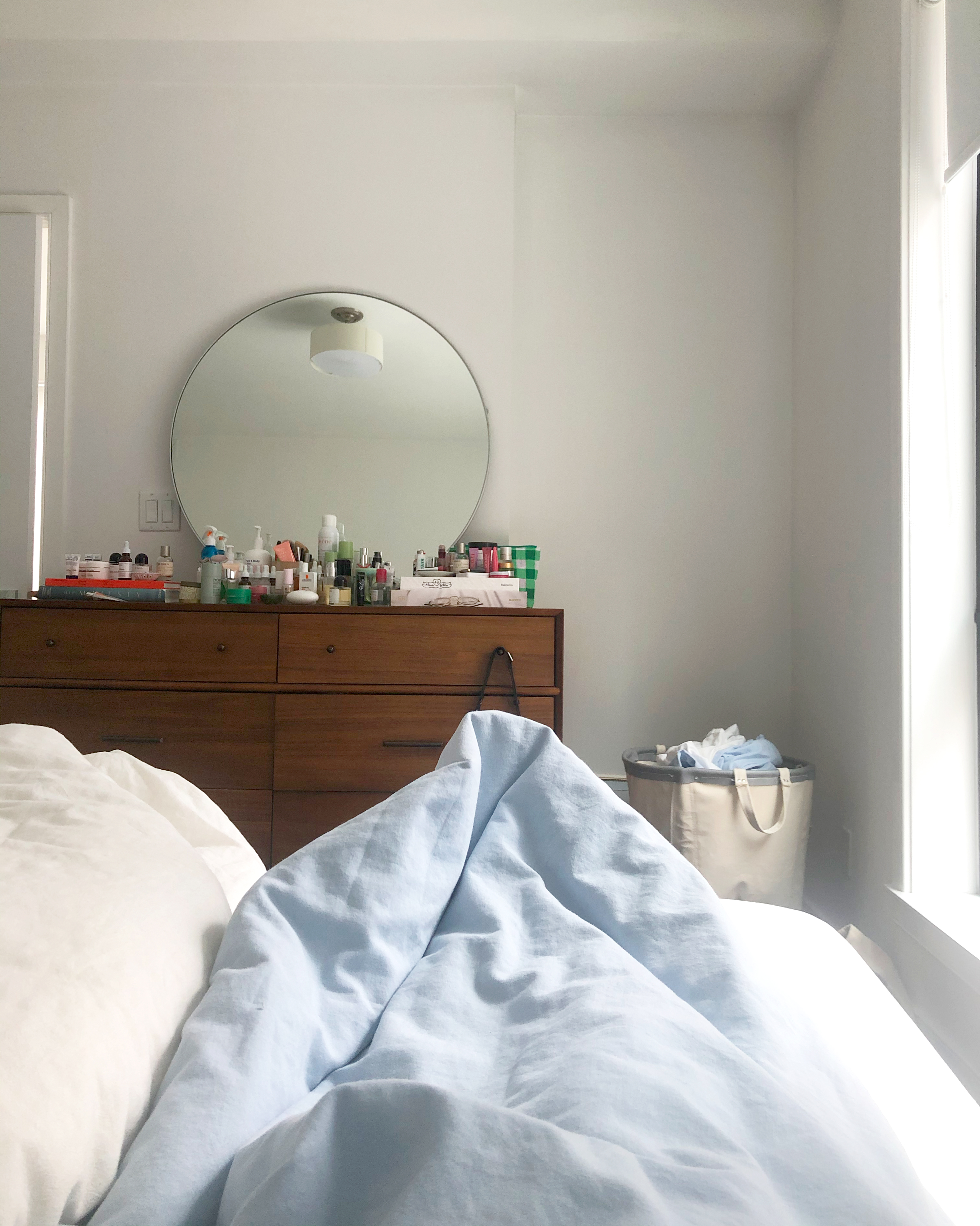 Since I’ve been home, my pastimes have included playing video games, slowly tie-dying my entire wardrobe, and cooking. Sometimes I run on the bridge to Manhattan and back, which helps me reset and feel balanced after a long work day. I also bought a gel lamp on Amazon, which is perfect for when I’ve got a lot of time on my (ahem) hands. And, if I’m still bored after all that, planning my hypothetical post-retirement injectables by following Cosmetic Derm on Instagram is entertainment enough. My mother is screaming.”
