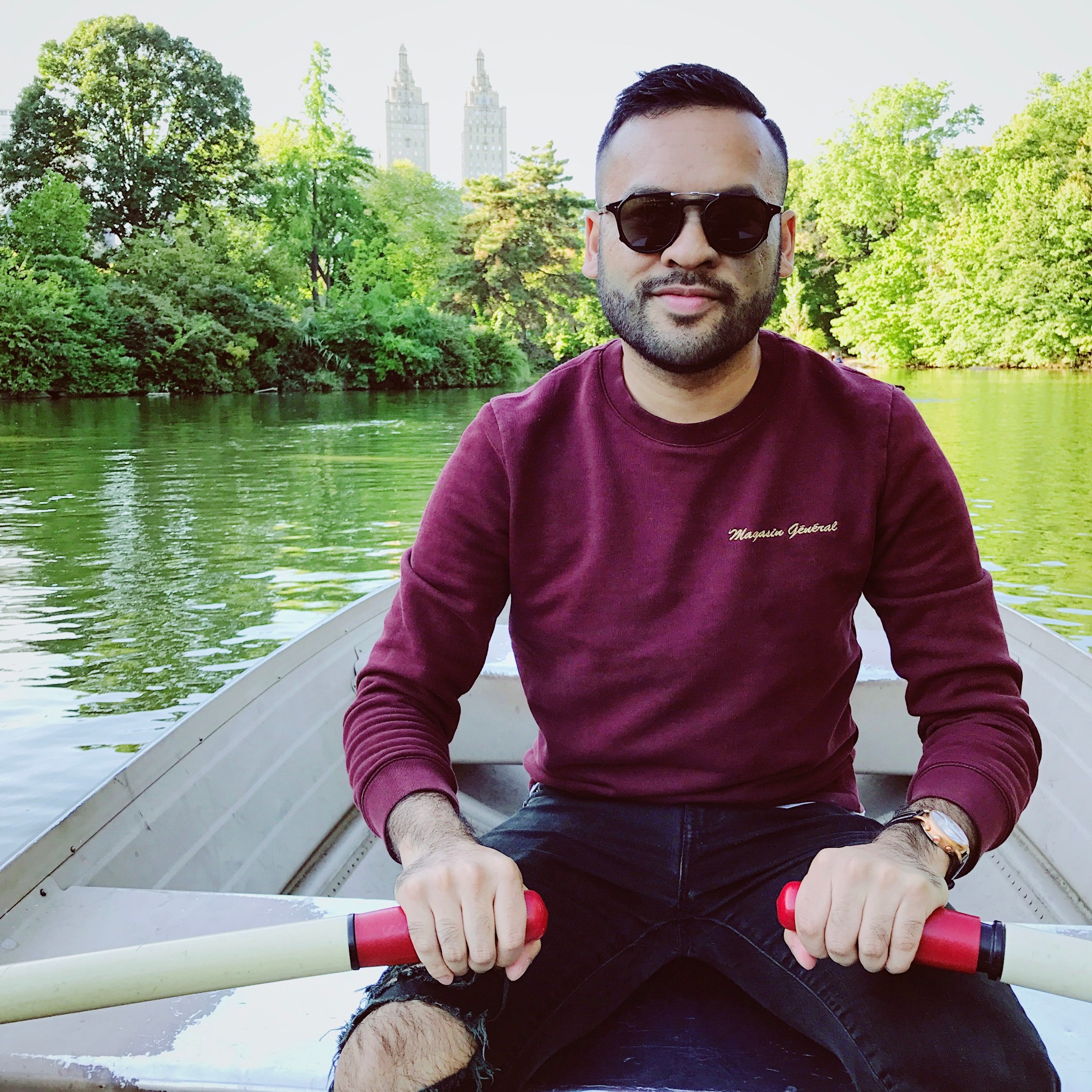 In the morning, I use Glossier’s Milky Jelly Cleanser, followed by Solution to exfoliate. I love how gentle both of these products are—many facial cleansers have dried out my skin in the past. Then, I use The Ordinary’s Niacinamide and Zinc serum. I’ve found that niacinamide helps even out any pigmentation, and I like the potency of that one. I have facial hair that ranges from a little bit of stubble to a defined beard, and to treat it, I use The Ordinary’s rosehip oil, which adds some shine and smoothness and also helps out the skin underneath. I moisturize with Glossier Priming Moisturizer, and finish off with Drunk Elephant Umbra Tinte sunscreen. A more affordable alternative is CeraVe’s Tinted Sunscreen. I have darker skin, so SPF with a little bit of a tint is key. That way, I don’t look like a ghost when I want to protect my face from the sun. At night, I’ll cleanse with Milky Jelly again and then use Differin Adapalene Gel. Then, I’ll use the CeraVe Moisturizing Cream for more intense hydration throughout the night.