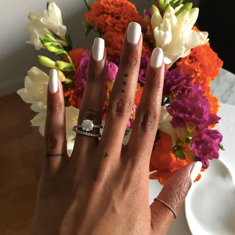 My nails are my pride and joy. I do them every Sunday night like clockwork—you will never see me without polish on. I like my nails to be oval-shaped and long, and my secret to keeping them strong is moisturizing my cuticles every night with Olive & June’s cuticle serum. And Seche Vite’s Gel-Effect Top Coat is THE best. It dries so fast and leaves me with shiny nails all week long. I also force my fiancé to open packages, unbutton particularly tight buttons, and open beer cans for me. But he likes my nails, so he always helps! Actually, the week he was going to propose, I was considering cutting them down and starting over. Every time I’d ask for his thoughts, he was so adamant about not cutting them. I would’ve been SO upset if I didn’t have my signature nails in those photos!