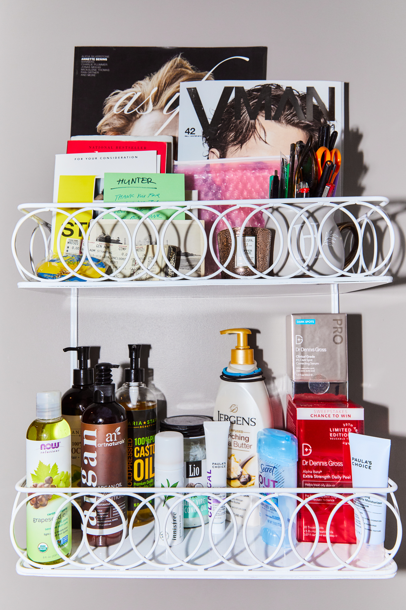 Eyebrows are important, so I always make sure to take care of mine. I like overgrown, brushed up brows, and I don't like them too dark. Natural but dramatic. I get them threaded every six months at Thread in Fidi, and at home I have a daily brow routine. First I use Mary Kay's Volumizing Brow Tint [Ed note: discontinued]—got that at work from a beauty sale. It has the most inefficient brush in human history—it's like a mallet—so with the lightest touch possible I'll use that brush to go over the ends of my eyebrows. You know how in photographs, your brows kind of disappear? This is dark enough without looking fake. I try to focus on the outsides of my brows with that, and then on the insides I use Benefit Gimme Brow or Boy Brow, depending on how I feel about the spoolie. I'll let that dry and put on blush or something, and then I'll use a clear brow gel. Right now I'm using Anastasia's and that brush is a big ol’ freak.