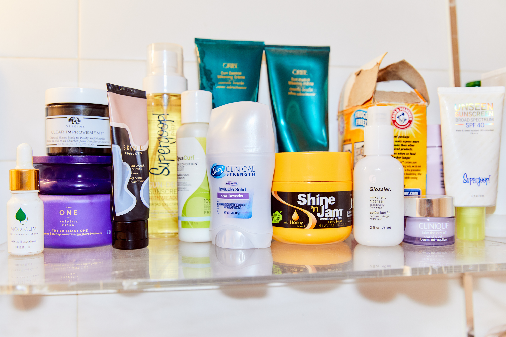 When I was younger I wore braids all the time, then I stopped for a bit, and started back up when I was older and too lazy to deal with my hair. I go to this salon in Flatiron called Nappstar. They're so fast, so nice, and always on time. If I'm not doing box braids I'll go to another salon in Ridgewood called Magic Fingers—they do a lot of hair designs there and that's really fun. I go up to Harlem and buy human hair for the braids—I get three packs for $75 and it's just easier on my edges. It's also lighter. Using a spray bottle, I shampoo with Tea Tree Special Shampoo from Bed Bath & Beyond because it smells good and feels good on my scalp, and I condition with coconut milk from Creme of Nature. I'm pretty agnostic about leave in conditioners—whatever feels watery, I'll use—and when I’m not in braids I deep condition with Briogeo. I sleep in a satin bonnet, and I also have satin pillowcases, just to double up. And for edges I use Shine Jam Nourishing Gel because it smells good. So much of what I do is because something smells good.