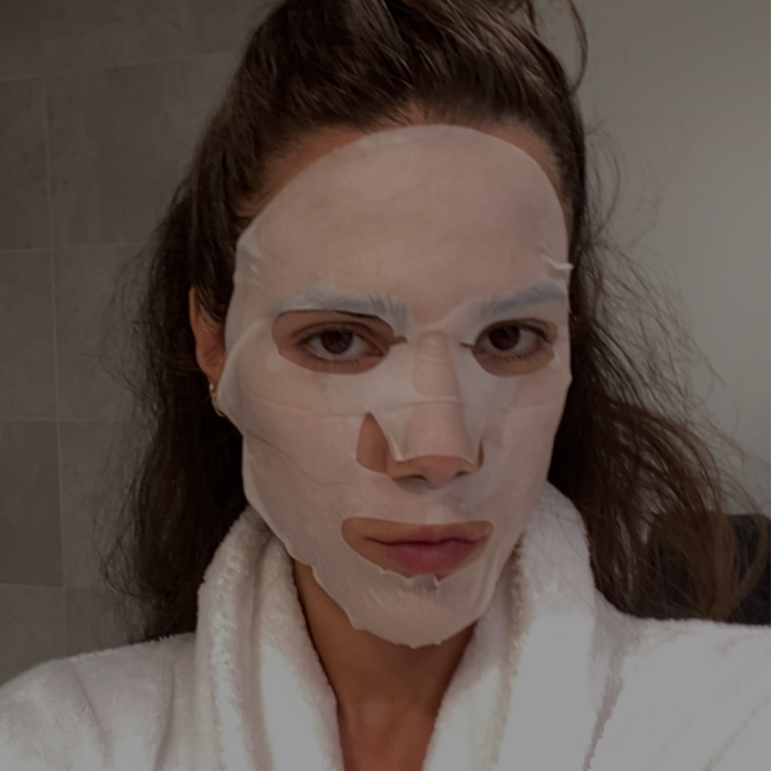 For about a year I have been using an acne starter kit version of Biologique Recherche products. I’ve started to get compliments on how glowy and dewy my skin looks, so I’m sticking with it. I use Lait U to cleanse, followed by a cocktail of serums in the morning: first the Serum Complexe Iribiol to control my breakouts and then Serum Extraits Tissulaires to hydrate and soothe. In the heat, I use Gel ADN Silkgen during the day and seal it all in with Serum Fluide VIP O2. When I’m not wearing makeup, I use the tinted Elta MD sunscreen. My skin tans very easily, so I like that the tint adds some color to my face to match my body. At night, I repeat my morning routine but skip the SPF and add P50 1970 to exfoliate. I also mix in some Serum Placenta, which is helping me get rid of a lot of dark scars. To moisturize, I use Creme Dermopurifiante. I also mask with Masque Vivant two to three times a week, and one of those times I mix it with baking soda. Diana at Rescue Spa said to do it—it helps give the mask a boost and my pores a deeper clean. And if I’m feeling extra dry or have an event coming up, I use Dr. Jart’s Ceramidin sheet mask. It makes my skin look very plump, which kind of fills in the scars. It’s a perfect primer.