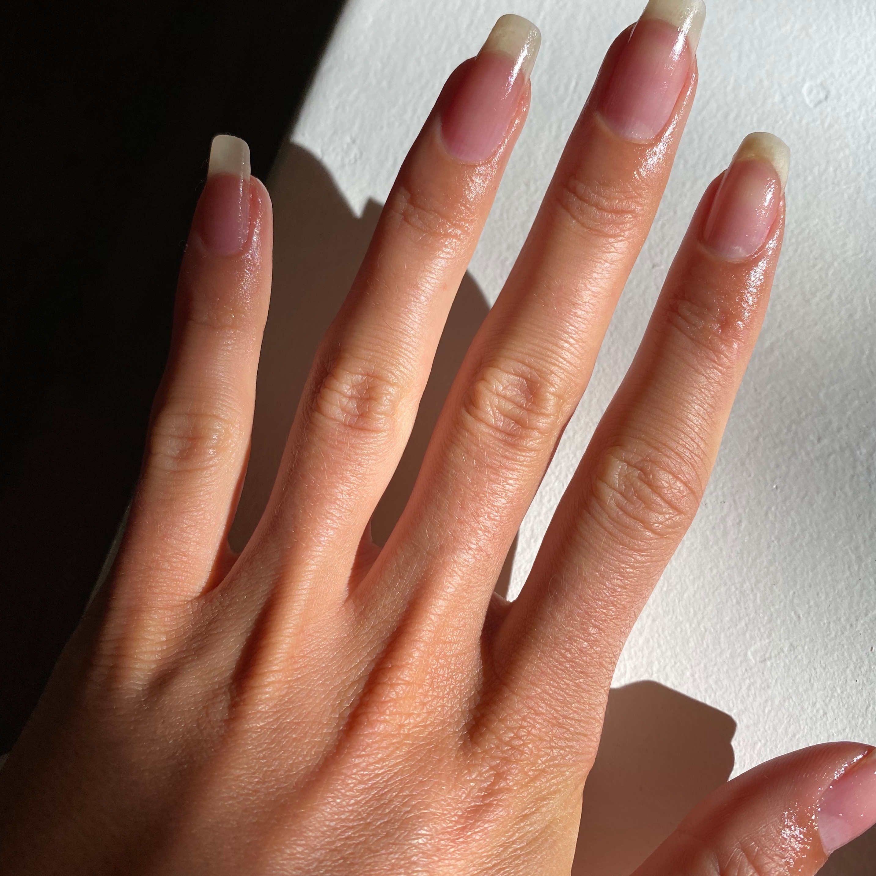 I started painting my nails when I was five, and a lot of my baby dolls have the evidence on them. But now I’m really good at it! I even did my sisters' nails for their weddings. My friend Priscilla and I call our nails ‘the girls,’ and my girls come and go. I like to keep them as long as possible, but they need humidity or a lot of care to stay super strong. I use winter to moisturize more and take a break from polish. I found this nail strengthener from Eveline Cosmetics at a Croatian pharmacy one summer and it works wonders. When I am wearing polish, I try to do my nails once a week. I usually file them into a square shape, then buff so the tips aren’t sharp. The smooth edge helps your nail polish stick. I don’t cut my cuticles because that makes them grow back like weeds, but if I do need to trim a straggler, I use a cuticle stone instead. And if you soak your nails with some ACV, water, and essential oils, dead skin and cuticles come off easily. You end up with whiter nails, too. Then I do a layer of Seche Vite base coat and usually use a red, pink, or nude polish. My ultimate nude nail is one coat of Essie’s Adore-A-Ball with a coat of Mademoiselle on top. It is just enough color but still very natural. I finish with Seche Vite’s Gel Effect top coat. The most fun is when I have nail parties with my friends. When everyone leaves, my apartment smells like a salon.”