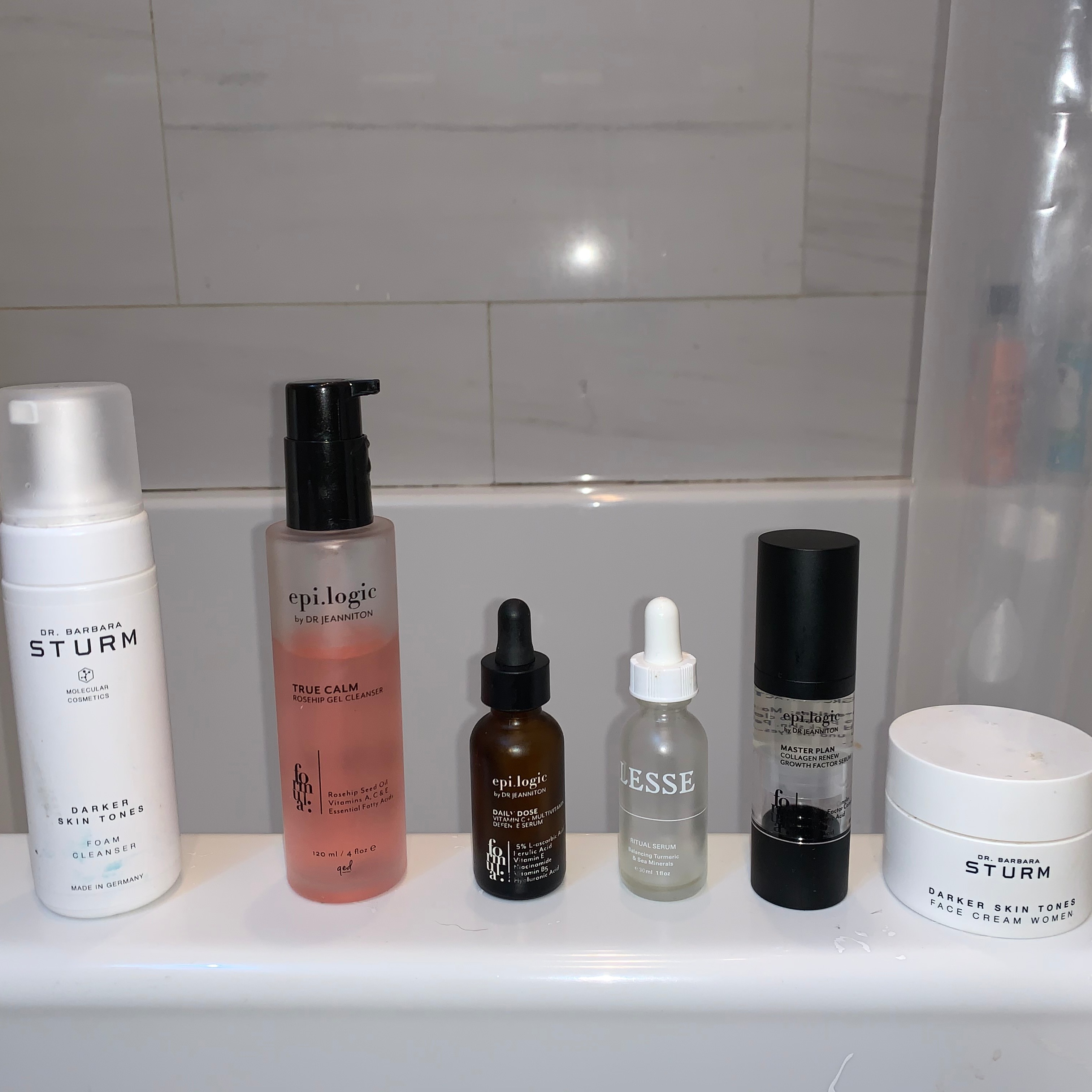 When I wake up, I do my beauty routine—it helps jolt me into the day. We sacrifice a lot of things for our jobs, but clear skin shouldn’t be one of them. I saw a vast improvement in my skin once I started working from home, which had a lot to do with the fact that I was less stressed. I suddenly had the time to treat myself well. One of the many gigs I took as a freelancer was working with a Brooklyn-based oculofacial plastic surgeon, Dr. Chaneve Jeanniton. She has totally impacted my beauty routine. Now, I either cleanse with the True Calm Rosehip Cleanser from her brand, Epi.logic, or Dr. Sturm’s Darker Skin Tones Foam Wash. Both make wonderful lathers that wake up my skin. Then, I tone with the Epi.logic Even Balance toner or Thayers Witch Hazel, which Dr. Jeanniton would probably kill me for using. But I think both add moisture to my skin while getting it cleaner. After that is Epi.logic’s Daily Dose vitamin C serum, otherwise known as the goods. The combo of vitamins C, E, B5, ferulic acid, hyaluronic acid and niacinamide makes my skin bounce and glow. Then I work their Master Plan serum in, which helps stimulate collagen and keeps my skin youthful. I add a few drops of Lesse Ritual Serum oil afterward for moisture (love the smell, love the consistency) and then finish off with Dr. Sturm’s Darker Skin Tones Face Cream. I exfoliate once a week with Dr. Sturms’s Enzyme Cleanser, and also do masks regularly—I love Joanna Vargas’ Glow-To-Go pack, which Mara Hoffman got me on to.