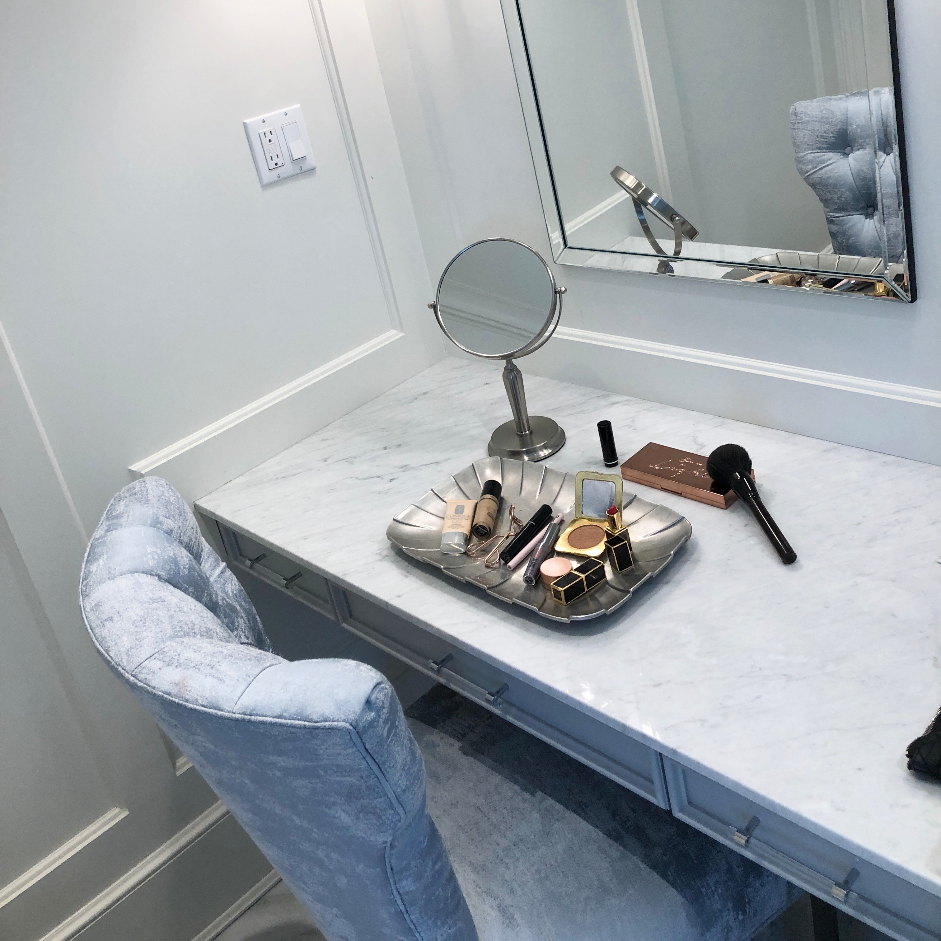 I have dark undereye circles, which is very common in olive skin tones. I remember the day I first discovered concealer, at the Lancôme counter at Bloomingdales: the beauty advisor put it on my face, and I was instantly transformed. Now, I don’t go anywhere without Too Faced Born This Way Sculpting Concealer, Clinique SPF 30 CC cream, and Becca Under Eye Brightening Concealer (in that order). Then I use two different bronzers, Make Up For Ever Pro Bronze Fusion and Tom Ford Soleil Glow. For eyes, I draw a slight wing with Glossier's Pro Tip Eyeliner, curl my lashes, and then apply Benefit’s They’re Real Mascara. But I think my all time favorite beauty product is Make Up For Ever’s Artist Rouge Light lipstick in Satin Rosewood. Other lipsticks I love are Tom Ford matte lipstick in Ruby Rush and Flame—worth every penny because they literally stay on all day or all night. My team has already come up with the title for my future memoir: Pen, Paper, and Lipstick, because that’s what I bring with me to every meeting.