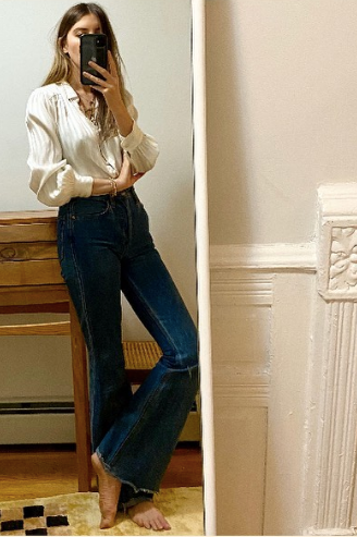 I am so inspired by the ‘70s with what I wear, and I feel like that spills over into beauty as well—I like that bronzey, glowy look. I have tried almost every tinted moisturizer from the highest end to lowest end and my favorite is L'Oréal Infallible Pro-Glow in 206 Buff Beige. I usually put it on, then use a tissue to wipe it off my nose. Violette once said in a video to avoid putting foundation on your nose because then it looks like you aren’t wearing any makeup, and that really stuck with me. I then use Too Faced bronzer on my cheeks and forehead, and use an eyeshadow brush to apply it on my eyelids and under my eyes. It all kinds of blends nicely and is an easy way to achieve a really effortless look. In the summer, when I'm a little more tan, I use the Kosas Golden Bronze in Medium instead. Then, when I want to look a little fancier, I take some Vaseline and put a little bit on my lids to make them look shiny, dark, and glossy. It’s the perfect car trick—I apply it over the makeup I’ve been wearing all day without a mirror, and then take any excess Vaseline and use it as a little highlight on my cheeks. I use Lancôme Hypnôse mascara on the top and bottom eyelashes, and skip the eyebrow pencil. I get my brows done by Jimena and in between appointments I try not to touch them at all—she does such an amazing job that I never have to use any makeup on them. I haven’t been able to see her in a while so right now I use Anastasia Beverly Hills clear gel on my brows to tame them a little. I also live and die by the Dr. Devgan Lip Plump. It makes my lips tingle, brings some natural color into them, and gives me that glossy look without feeling sticky.