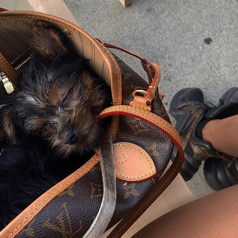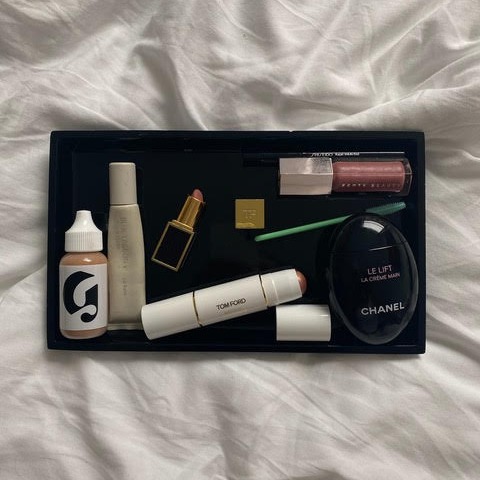 I’m all about accentuating my features, not covering them. I wax, tweeze, and trim my own brows thin because the hairs are sparse. Keeping them full would require way too much filling in, and anyway, if I let them grow out my BFF Laina will drag me. (We run Team Thin Brow.) I use the cult favorite Anastasia Brow Wiz to sculpt them, and then the brow gel to keep them in place. If my skin is a little red, I use Glossier Skin Tint to balance that out. Mascara and strip lashes are annoying, and I don’t have time for that. I get super long lash extensions in a cat eye shape, which is basically a cheap version of an eye lift. I see Tammy at Mint By Mai, who is so sweet, clean, and efficient. If I’m going out at night and want to be sexy, I apply Shiseido’s Kajal Ink Artist Shadow pen in Tea House. It’s a nice deep brown I can create an easy smoky eye with in like five seconds. For real. Then I apply Fenty lip gloss in Fu$$y and, last but most importantly, I apply a ton of Tom Ford Glow Stick highlighter in 04 Courchevel. It’s a must that my face is always as golden as my jewelry. I always make sure I have my brow pencil, cuticle oil, gloss, eyeshadow, rosewater spray, highlighter, and hand sanitizer in my bag before I leave the house. My friend Coco gave me the Chanel Le Lift La Crème Main hand cream for my birthday this year, and it’s been so good to have on hand because hand sanitizer dries me out. I always offer it to my friends after we clean our hands.