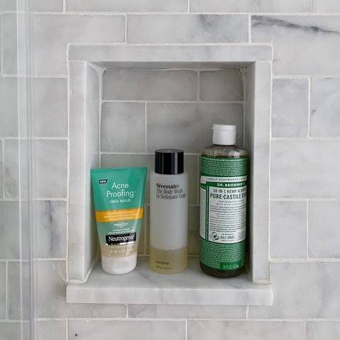 I shower twice a day—minimum. I use Nécessaire body gel in Sandalwood mixed with Dr. Bronner’s Almond because I like both equally, and sometimes I feel like the Dr. Bronner’s on its own makes my skin feel stripped. I also wash my face in the shower with Neutrogena’s Acne Proofing Scrub. It just works. My skin isn’t even acne-prone, but this cleanser keeps everything perfect and balanced. When I cleanse my face, I pretend I’m giving myself a facial. If you don’t know how to give yourself a facial massage, you can follow a tutorial—it seems so extra, but activating the lymph nodes is so crucial, and it’s also really fun. When I’m tired in the morning, this helps wake me up. Using the steam from the bathroom, I also get to work on extracting my blackheads once a week