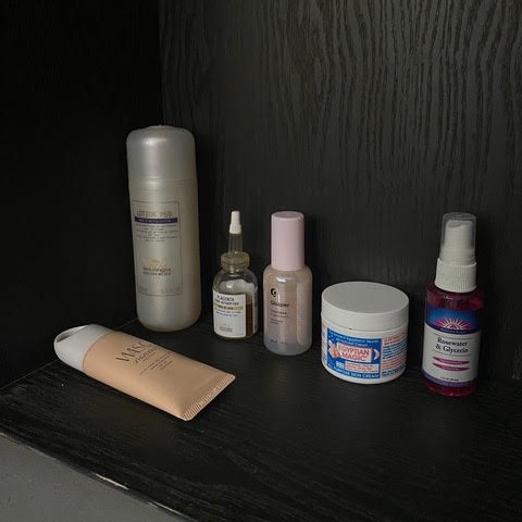 When I’m done with my shower, I pat my face dry and apply P50. It’s the only skincare product worth paying over $100 for—I discovered it years ago through Into The Gloss, and I’ve been hooked since the moment I found a spa in New York that sold it. I apply P50 with my hands instead of a cotton pad so I don’t waste any product. After, I mix up a few drops of Biologique Recherche Serum Placenta with a thick glob of Egyptian Magic and one drop of Glossier Futuredew. Egyptian Magic is my favorite—it has like seven ingredients, doesn’t clog my pores, and my skin absorbs it so well. When I apply a lot in the morning, it’ll settle into a nice dewy glow by mid-day. To finish, I dab on Shiseido Waso Color-Smart Day Moisturizer because duhhhh SPF is important. I moisturize my body with Palmer’s Cocoa Butter on days when I’m not really going to be out and about, and when I am, I use Hawaiian Tropic Dark Tanning Oil instead.