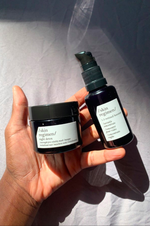 In the evening, I’ll cleanse and tone as usual and then change up my treatments. I apply a retinol from Skin Regimen which is great for smoothing out my skin's texture and helping products penetrate deeper. To finish off, I also use their Overnight Pro-vitality Mask. It’s detoxifying and reinvigorating and leaves my skin with an effortless glow come morning.