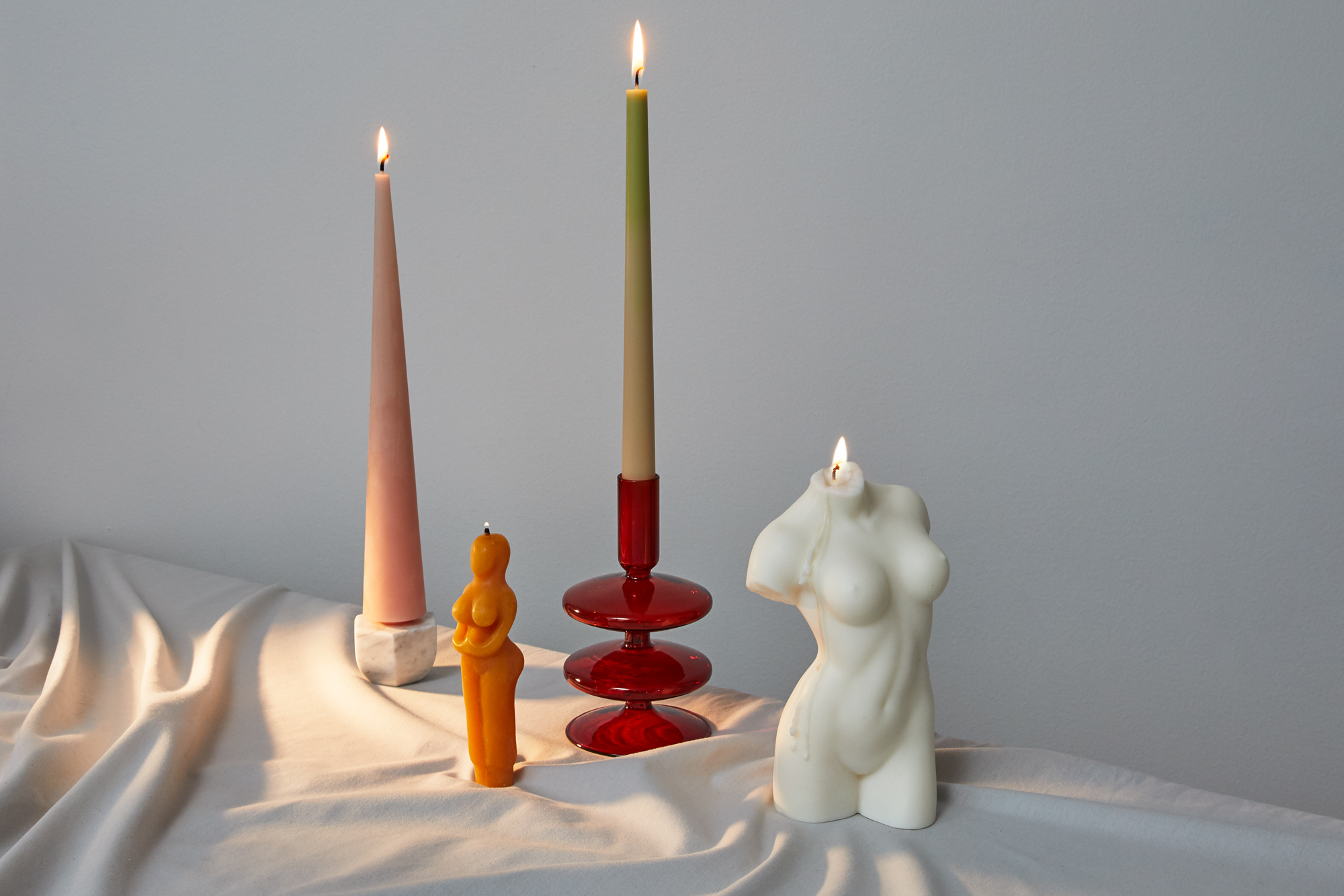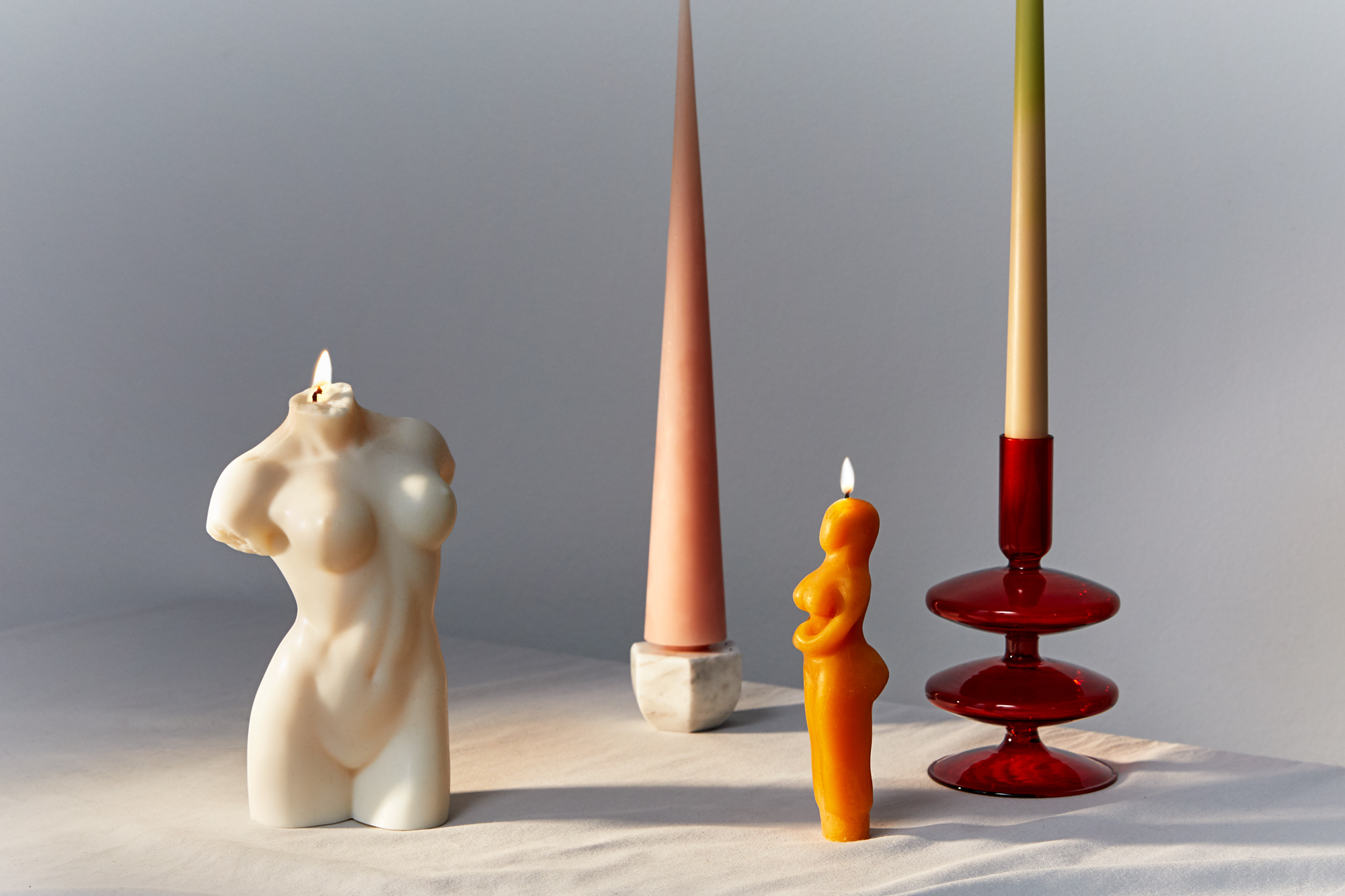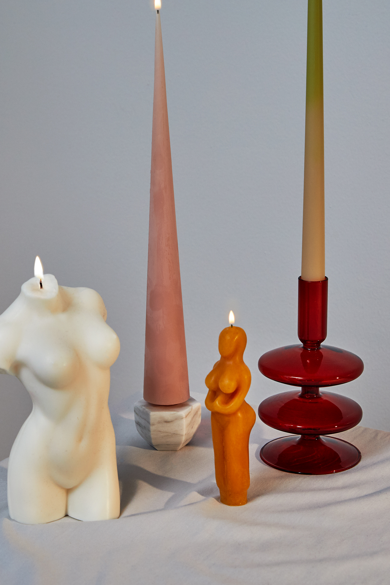 Handmade Goddess Beeswax Candle, Edition 94 Swirl Candle in Rose Pink, Hannah Candle, Catbird Flora Candle in Ivory and Pink, The Floral Society Fancy Tapered Candles in Parchment, Loewe Scent of Marihuana Wax Candleholder, Nata Forme Candle in Cream, Greentree Home Cone Taper in Blush, Areaware Totem Candle in Small Plum, Lex Pott Twist Candle in White, Esh Mandarin Orange, Urban Outfitters Ombre Taper Candle Set, Esh Tie-Dye Star Pillar, Areaware Totem Candle in *Medium Plum