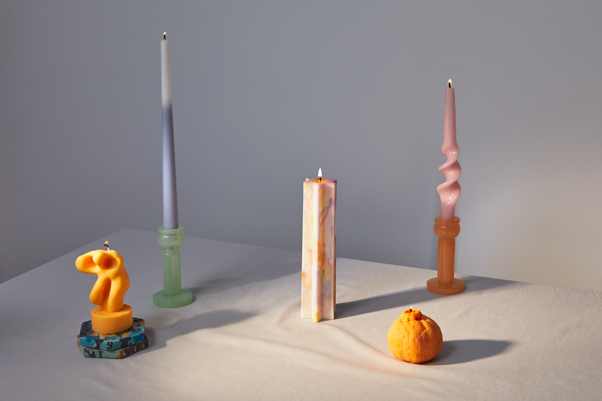 That doesn't mean you have to miss out on the warm, drippy delight a good candle brings—a new menagerie of unscented candles is here to update the ol' classic pillar (and your mantle) with color, texture, and wiggly shape. [Ed note: OK, fine, the Loewe one is scented. But it's still more of an objet than your run-of-the-mill candle, don't you think?] Unlit they're interesting pieces of sculpture, but light the wick and they transform into shimmering magpie magnets that can liven up any surface. You might even take the party outside, where a scented candle would be wasted but an unscented one serves as a whimsical light source while you relish in the last nights of barkyard dining. Not that you need convincing—if you're anything like us, at least one of these candles is in your cart already, and you haven't even finished this paragraph.