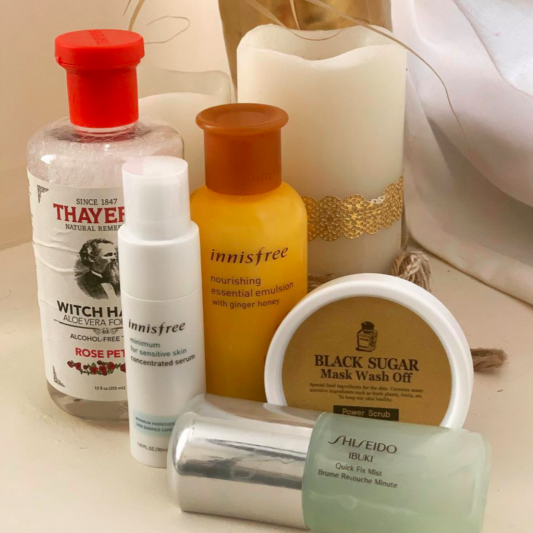 I, like all self respecting millennials, am into Korean skin care. I am obsessed with Charlotte Cho—I love how entrepreneurial she is, I love the way she talks about skincare, and I love how she’s recently started speaking up about politics. At night I do a double cleanse with her Then I Met You balm and a random soap bar that my mom got me. My number one holy grail is my essence, the May Coop Raw Sauce. Those people should give me stock. I have really oily skin and if I put too much stuff on my face it’ll be acne central, but this essence makes my skin feel amazing and look plumped up. The price is right too. If it’s morning, I put on sunscreen after that. I use the Korean Etude House sunscreen, which is really great. My moisturizer is the Belif Aqua Bomb, and depending on how my skin looks I might use some oil from Whole Foods on top.