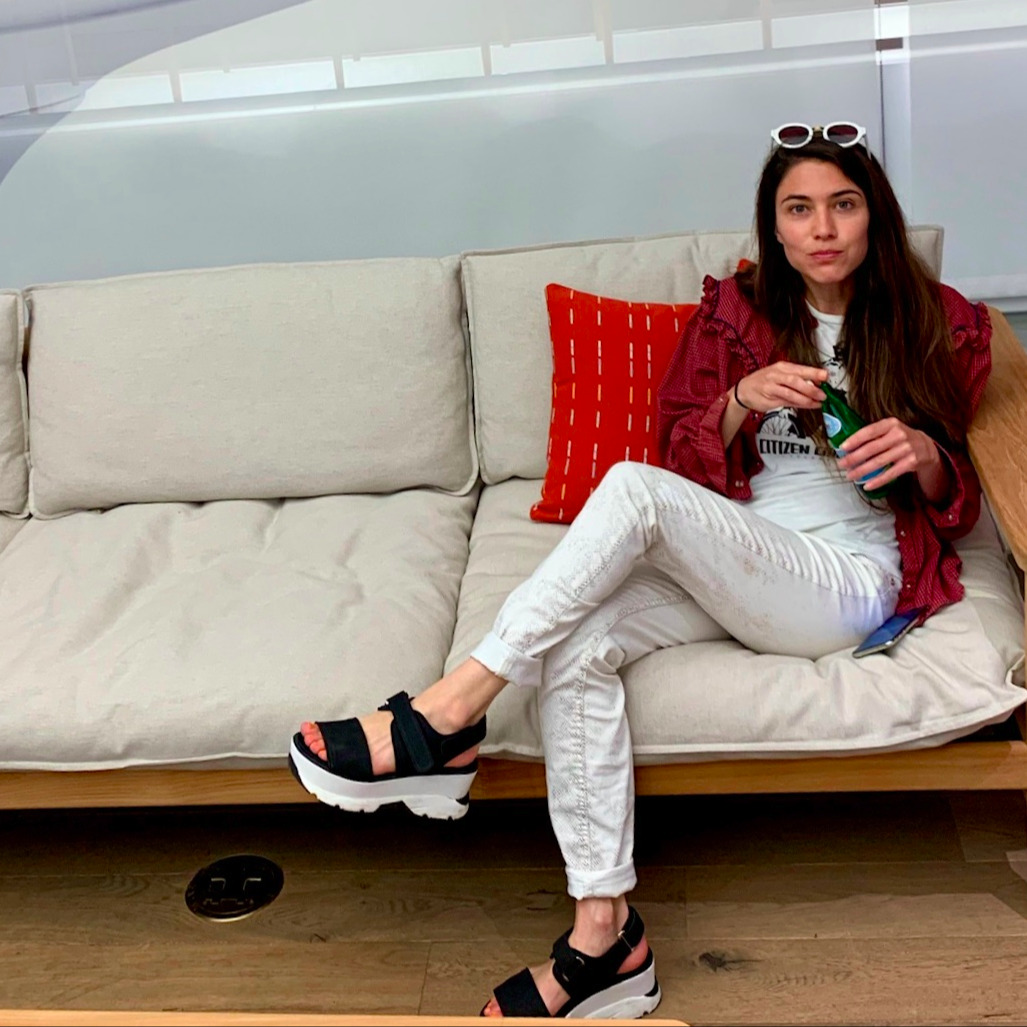 If I’m going to be recording something or have an extra special Zoom call, I’ll put on some makeup. I think my work life has really influenced my makeup routine—when I worked in New York I commuted three and a half hours from Connecticut, and when I moved to San Francisco I lived in Russian Hill and commuted three and a half hours to Mountain View. I would always have to roll out of bed before sunrise, which forced me to edit my makeup routine down to just the essentials. I usually use the Laura Mercier tinted moisturizer and this Ilia everywhere stick that I got in a gift basket. That makes me look a little more awake. I also like to use the Fig Balm Dotcom when I want more hydration. Then I use a little Glossier Lash Slick, which gives me a super clean look.