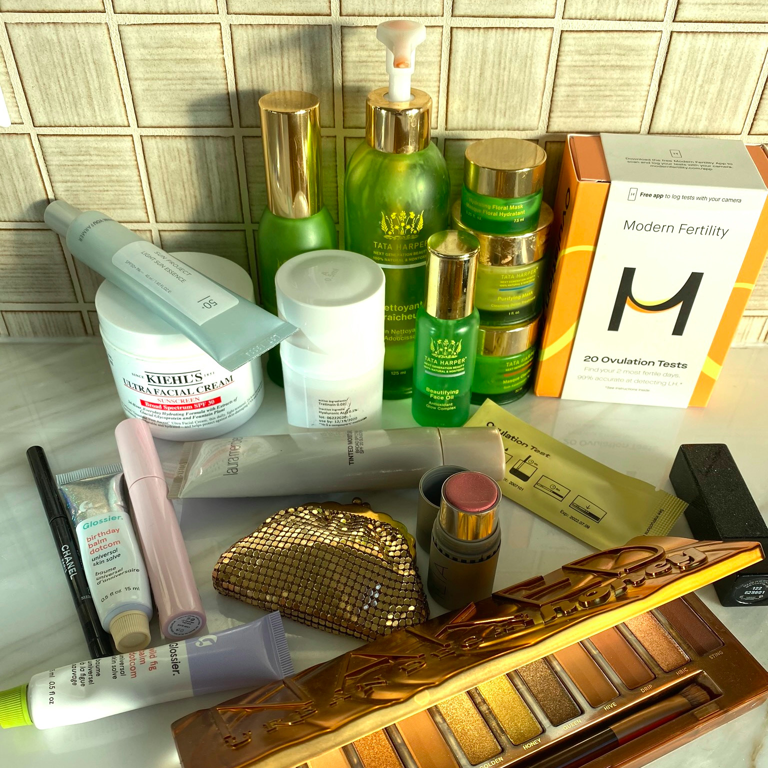 My favorite part of my morning routine is testing my ovulation. We launched ovulation tests about three moths ago and I'm obsessed—they're traditionally used when you’re trying to get pregnant, but women with irregular periods and PCOS can use them to keep track of their cycle. Am I on a twenty-eight day cycle, or is it thirty-one days? It’s like a science experiment. Next I wash my face with Indie Lee’s Brightening Cleanser, which is a fresh and easy way to start the day. My beauty routine has come a long way—I used to just use Dove soap and Cetaphil. Then I found this company called Haldi, which basically helps you build a skincare routine. I learned about it because its founder was an early Modern Fertility advocate, and everything it recommended for me was so good. Now I’m hooked. I have so many dermatologist friends who say that if you want your skin to look amazing, you should use these three things: preventative Botox, retinoids, and SPF. I’m not on the Botox train yet, but I do use a retinoid at night and I definitely use sunscreen. If you take a scientific approach to products, using SPF makes all the sense in the world. I am obsessed with finding good, lightweight formulas that I can throw on and not think about. I’ve tried so many I didn’t like, but the two I always reach for are Kiehl's SPF 30 moisturizer and Thank You Farmer’s Water Sun Cream. I found out about Thank You Farmer through Haldi, and I use that one if I’m going to be in the sun.