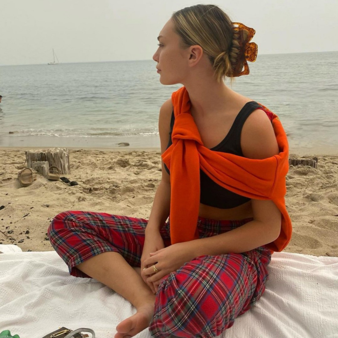 I don’t want other scents to blend in with my perfume, so I like my body products to be fragrance-free. Plus, that’s better for my sensitive skin anyway. I really like Dr. Bronner’s Shaving Soap. It’s made especially for shaving, and I don’t really know why it’s different but it’s so incredible. I read somewhere that coffee body scrubs supposedly bring circulation back to your skin and wake it up. I don’t know if it’s true or not, but I bought one on Amazon and I love it. I use it in small circles in my legs, and I love that it has a natural smell that isn’t overwhelming. I take the same approach with my hair products, too. I love when you can tell that my hair was just washed—it’s a fresh smell, but it’s not heavy. My hair is naturally wavy, and underneath I’ll always have a few ringlets. Sometimes it can look literally wild, but I’ve learned to like my natural hair because I don’t want to damage it when I’m not working. Florido does my cut and color, and he’s incredible. I haven’t been to see him in so long—I have quarantine hair. Honestly, I’m just happy about how long it’s gotten.”