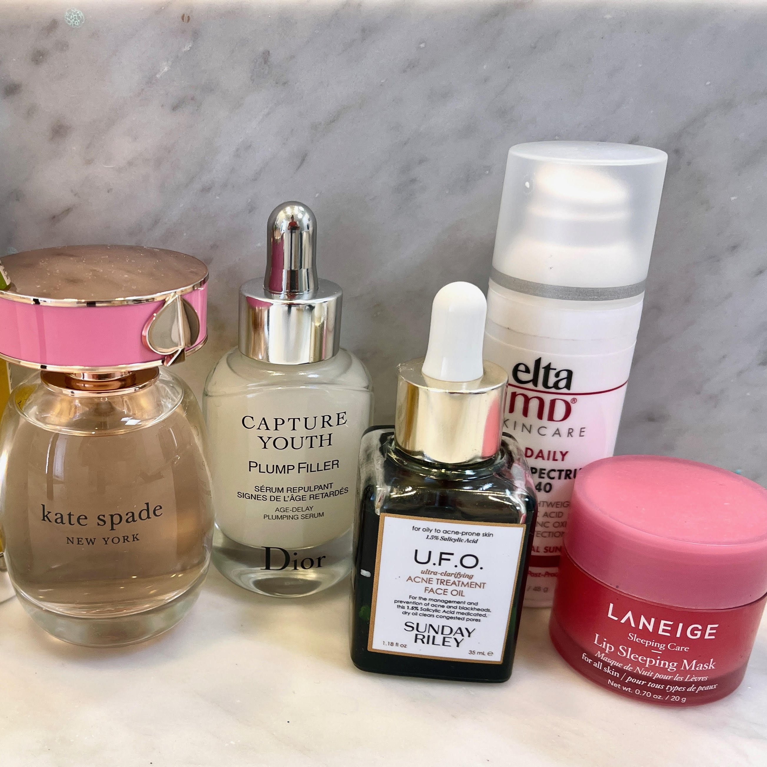 I feel like people don't know I have sensitive, acne-prone skin. I guess I don’t show it as much as I should. My skincare routine has been a lot of trial and error, but one thing that really helped is Sonya Dakar. She is an amazing facialist, and her products are awesome. I really like that they’re all clean and fragrance-free. I’m using her Silver Clarifying Wash, which helps clear my skin but is still gentle. I always, always use a gentle face wash. Right now my skin has been super dry, so I love to use Sonya’s Flash Facial next. It literally takes off all my dead skin in one minute. It’s so crazy. I love it. I’m getting really into oil serums, and Sonya has this incredible Omega Oil that makes my face look very moisturized. I also love this Sunday Riley UFO Oil, which I’ve recommended to everyone because it really does clear my pimples. And before I go to sleep I put Mario Badescu’s Drying Lotion on any pimples I currently have. The one thing I know I need to get better at is drinking water. It does make a difference in my skin, I’m just really bad at staying consistent with it!