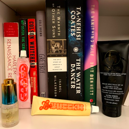 This summer I made the deliberate choice to make sure the products I use on my face are from Black or woman-owned companies. It used to just be Black-owned, but I’m now really into Korean skincare products and follow a Korean skincare regimen. The one exception to that rule is Pond’s Cold Cream. My grandma Shirley used it for most of her life, and she looks 20 years younger than she is. I’m just trying to look like my grandma when I’m 80, so no matter what new products or practices I add to my routine, I always find a way to integrate Pond’s into it. Right now I’m using it to take off my makeup at night, if I’m wearing any, and after that I wash my face with Peach & Lily’s Power Calm Hydrating Gel Cleanser. I use the same cleanser in the mornings, then the rest of my routine is pretty much the same. I apply their Good Acids Pore Toner and a bit of Klairs vitamin C serum to help lighten my acne scars. I really want to try a laser treatment to help rejuvenate my skin, because I feel like it could use a fresh start. While I’m trying to figure out if laser is for me or not, topicals help. Next I use Peach & Lily’s Glass Skin Serum and Beauty Bakerie’s Wake & Bake Oil. I’m currently looking for a good moisturizing cream to use before the oil, but I’m still deciding which one I should try. In the morning, I always finish with Black Girl Sunscreen.