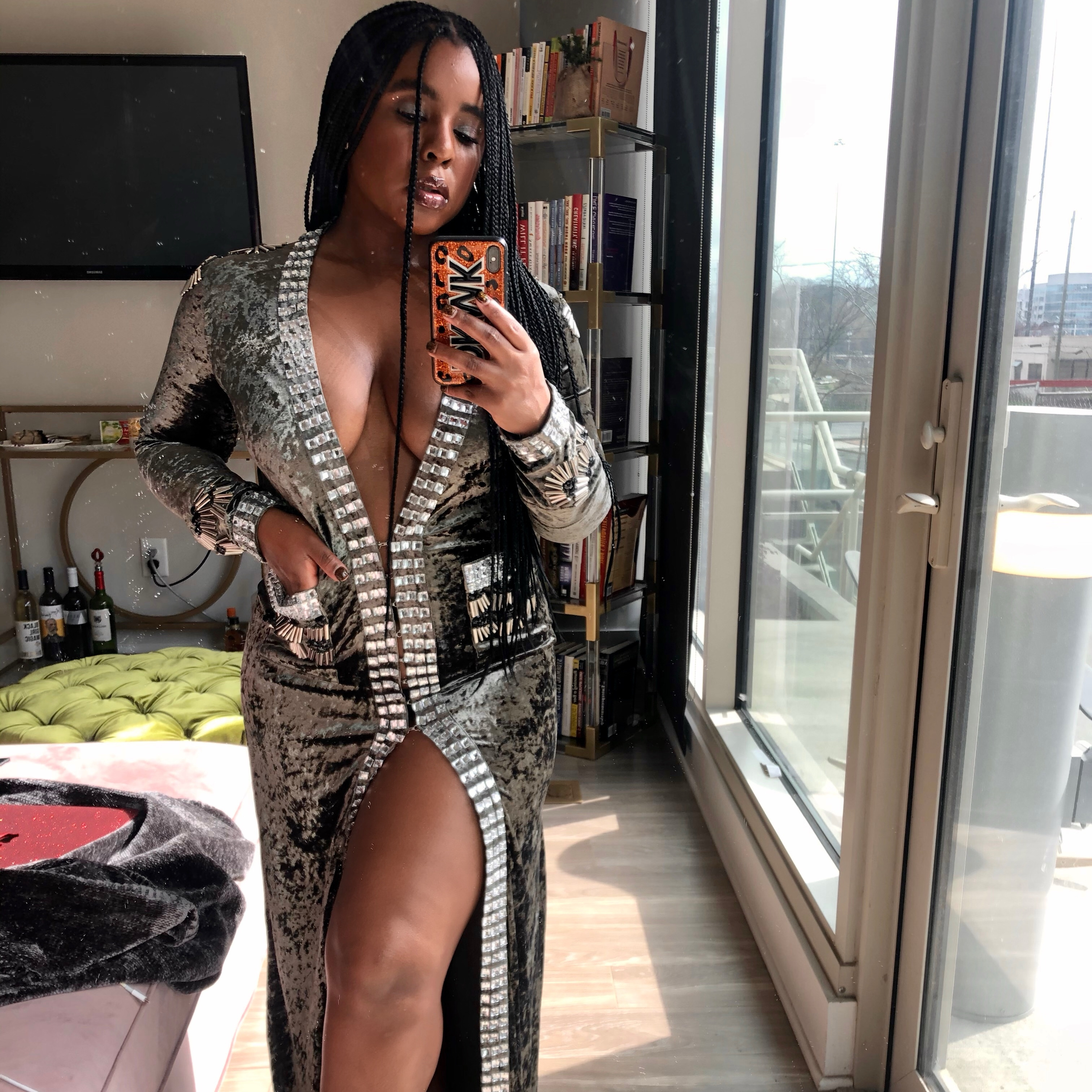 My hair is really thick and long. I started wearing knotless braids about a year ago, and it is the best investment. I can just wake up and go. My natural hair is so much work, even when I press it out—I still have to wear two bonnets at night, a shower cap in the shower, and if it’s hot outside, my hair reverts immediately. The one thing about these braids is that they take 12 hours to get done. Shakera Braids Atlanta does it, and I always ask for small, waist-length braids. I keep them in for five weeks, then I take out and wash the front section, and I get just that part rebraided. That takes six hours, but it’ll be good for another five weeks—it’s still better than going to the salon every two weeks for a silk press. I have seborrheic dermatitis, so about every 10 days I wash it really thoroughly. I use the Shea Moisture Jamaican Black Castor Oil Shampoo first, and then Head & Shoulders because it’s the only thing that consistently keeps the flare ups down. After that, I go back with a hydrating shampoo. I wash my body with Lush Honey I Washed The Kids, and when I want to exfoliate I’m obsessed with Frank Body. I’ve tried all their scents, but my favorite is the peppermint one.