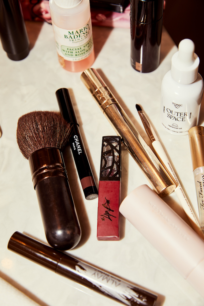 For my brows I use Benefit products. If I have a minute I like to use Precisely My Brow and Gimme Brow. Those have been the best ones for me. I used to use Brow Zings, but I never have time for that one. The one I end up using the most is Ka-Brow, which is an eyebrow cream gel. You can modify how heavy you want it to be, from a light brow to an intense brow, and it looks really good across the board. I only do heavy eyes for nighttime. My eyeliner of choice is from L'Oréal, the liquid one with the gold top. I can’t use pencil eyeliner. When I use pencil eyeliner, it looks like I'm a five-year-old trying to draw their family. Then I'll use mascara real quick, usually the Extreme Dimension 3D Black from MAC, and some type of lip. I have a clear Lip Bar product I use if I don’t want to use a color, and otherwise I do a strong red. I always have Bawse Lady in my bag, which is a liquid matte. Lip Bar’s founder, Melissa [Butler], is from my city. I love her immensely. When I do a strong red lip I also draw on a fake beauty mark with eyeliner—I put it on my right side between my nose and my lips. I just love doing that. Sometimes people are like, ‘Wait, have you always had that?’ Which lets me know they’re an idiot and that they don’t look at my face. [Laughs] It’s kind of a litmus test.