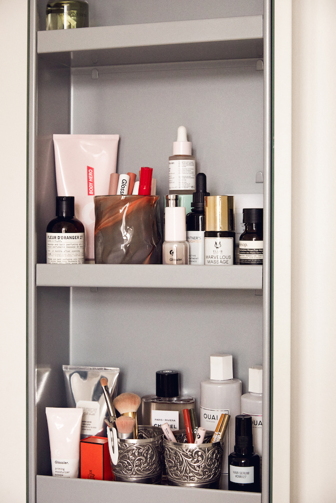 We used to not be able to get Glossier in Denmark, and so every time my friends went to New York they bought some stuff for me. Three years ago I went to the store in New York for myself. It was my first time traveling to New York in 10 years—I had been so busy with work, and the thought of sitting on an airplane for that long and having jet lag... I couldn’t do it. But after I left my company I got so much energy back. So that was the first thing I did: I got on an airplane, and I went to New York. It was such a nice trip. The energy over there, and the way people talk to each other on the street... I’m not used to that. People say things like, ‘Oh hi, how are you today?’ Or, ‘What a nice outfit!’ In Denmark, we don’t speak to each other on the street. We’re more closed off. New York's energy is so good. After I wash my face, I use the two Vintner’s Daughter products. The Essence is their new product, and it’s really more like a serum, and then I use the oil on top. I like them both because they’re very natural.