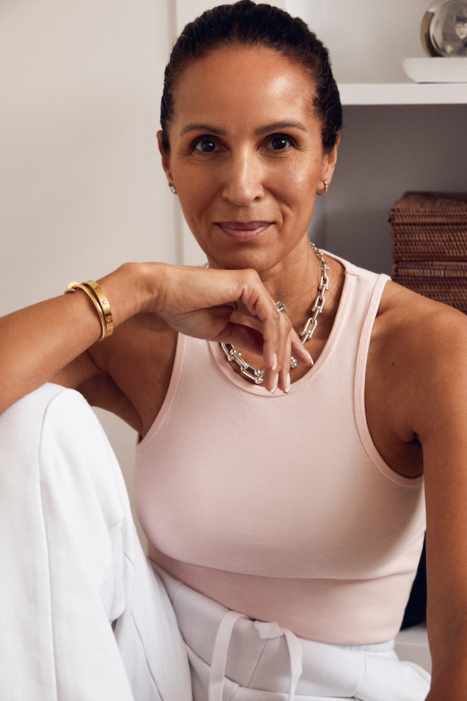 I have a good friend named Esha Khamo who cuts and colors my hair. Now he comes to my house, but usually I go to his salon. I live in a country of blonde girls, but I never felt the temptation to go blonde—my hair is really turning gray, and I like it to be a middle brown. Not too dark and not too light. He also does a treatment on my hair called a Brazilian, which takes all the frizziness out of it. I actually wear my hair back most of the time because, when I’m working, that’s just the easiest for me. Everyone is always in shock when I wear my hair down. Because of the pandemic, my hair is really long right now.