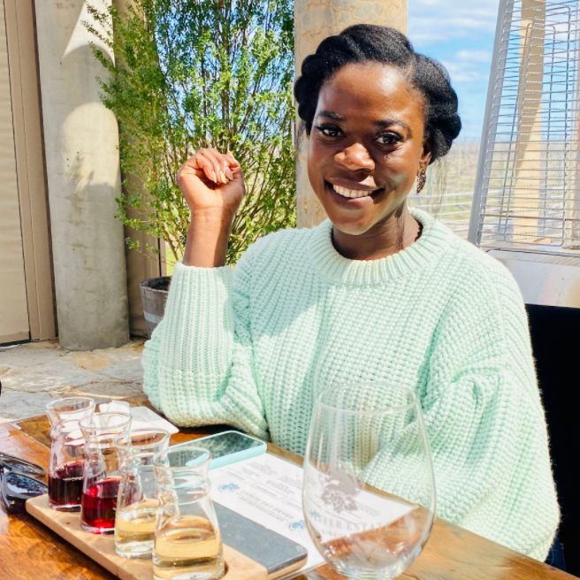 On my podcast, my co-host Taleah and I shed light on the African beauty market and Black beauty, topics rarely highlighted in the Western world. The whole idea behind the name is that we wanted to show people that there’s space in the beauty industry for everyone, regardless of your color, culture, and where you live. I really struggle with merging my two worlds, because when you’re engrossed in science, beauty is considered very frivolous. I’m working on owning whatever I have going on—like the fact that I might have blonde braids today, long, straight, black hair tomorrow, and a curly afro on Friday. And I’m focusing on beauty as a function of overall wellness. How do I feel? Do I feel good? What makes me feel good? If I feel good, then I look good, which motivates me to maybe spend a little more time caring about my appearance.