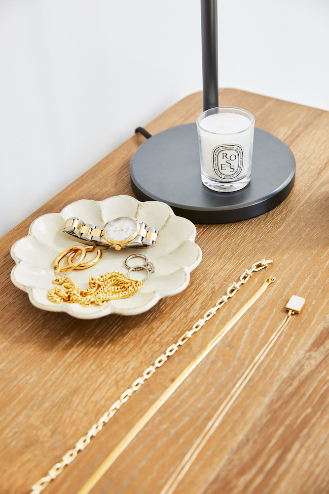 I always have Coco Mademoiselle by Chanel, which I’m almost out of right now. I’ve been using that for a long time. Gris Dior was what I bought for my wedding—it’s one of Dior’s less popular perfumes, but when my husband and I went shopping together he really liked it. I do too. I still return to it sometimes. What I’ve been wearing most recently is Tom Ford Jasmin Rouge. I smelled it on someone else first, and asked them what it was because I loved it and wanted to smell like that too. I ordered it from Sephora immediately.”