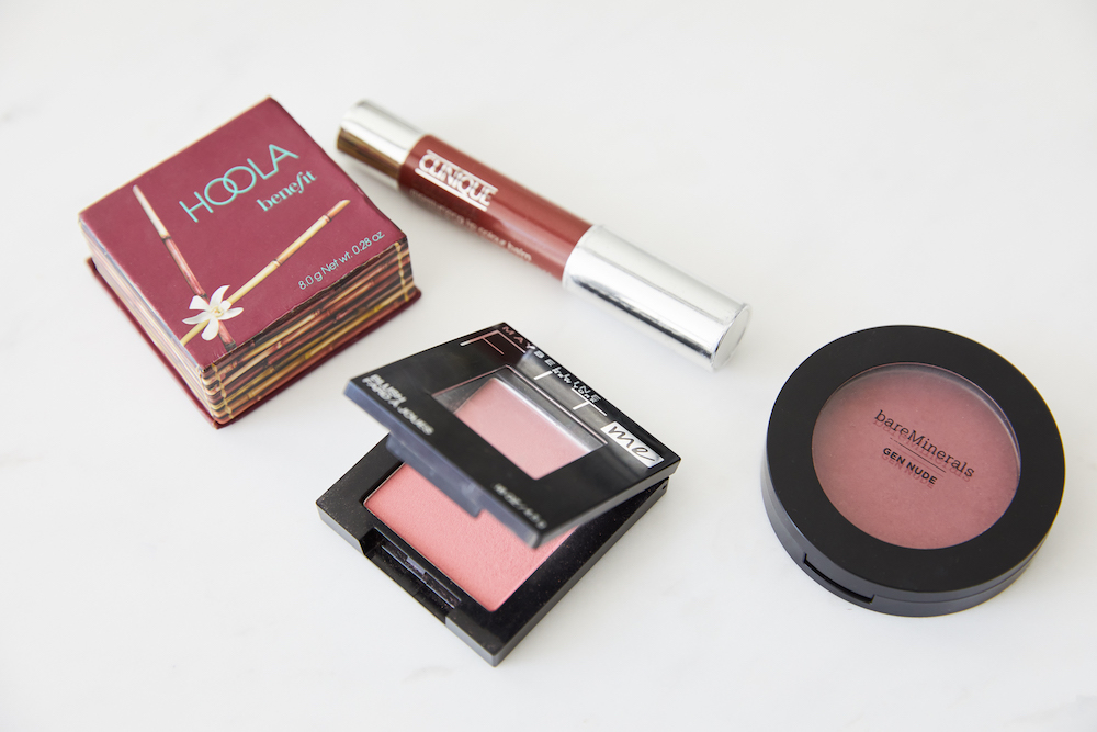 I’ve pretty much been doing the exact same makeup routine every day for 10 years. The only thing that’s changed is that, during the pandemic, I don’t wear mascara. In the beginning of quarantine Erin went on Instagram Live with me and taught me some makeup tips. My favorite one is applying concealer on the tops of my cheekbones to create a kind of cat-eye effect. I take a flat brush, apply concealer right at the corners of my eyes, and blend it upwards. I love that for when I’m super sleepy. I also put concealer under my eyes, on my chin, and on my forehead. I’ve been using Maybelline’s Instant Age Rewind with the fluffy end forever—usually I’m Warm Light, but in the summer I use Sand. I don’t like liquid foundation because it makes me feel like I’m wearing a lot of makeup. But I will use powder foundation, and I like to apply Fit Me 220 all over my face with a massive fluffy brush. I apply my blush sticks with a giant fluffy brush too. Milk Makeup’s Quickie is good, and I also like this Bare Minerals one in You Had Me At Merlot. I always put on way too much blush, which is trendy now.