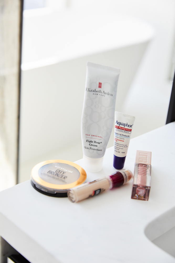 I also use bronzer. Benefit’s Hoola bronzer is my old faithful—been using it forever, put it all over my face and a little bit on my eyes, just in the crease. Then I use some sort of brown eyeliner to create a small flick, which changes my face completely. It’s so satisfying. I do need some sort of brow because I have no eyebrows. This brow pencil by Benefit helps fill them in, and then I usually just use a little bit of hairspray on a spoolie and brush up my brows to keep them in place. That works great. A lot of makeup artists use the Shu Uemura lash curler, and I feel like it always pinches or snags my eyelids. The one I love is Kevyn Aucoin’s, and I’ve purchased it multiple times. I just got the Maybelline Lash Sensational Sky High mascara and I am obsessed with it. It’s so funny, I’ve been with Maybelline forever and they usually send me all of their products, but I bought this one myself. I saw someone using it on Tiktok and literally ran to CVS. It’s insane. I have no eyelashes, and this gives me crazy eyelashes. Their new Lifter gloss is so good too. I either use that in the shade Silk, or the same Milk blush stick. I also love Clinique’s Chubby Stick in Graped Up. Underneath I always use Elizabeth Arden Eight Hour Cream. Seriously, I use that stuff every single day.
