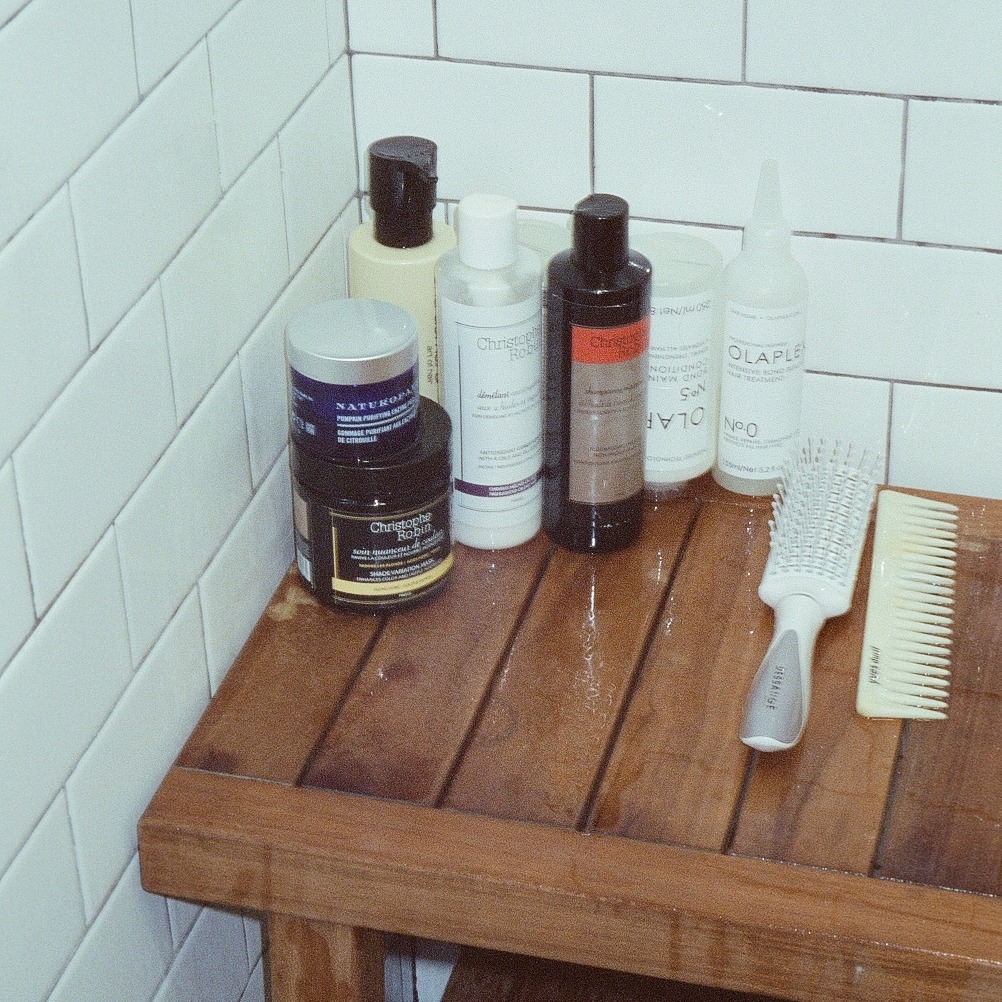 The Olaplex Bond Smoother is the heat protectant I use when I blow dry my hair—it’s perfect for frizz, and has really helped me with breakage. I also wash my hair with Olaplex shampoo and conditioner. I use a lot of the conditioner. If I want to add texture, I use the Ouai Conditioning Cream to scrunch it a little bit. And then I use a hair oil. I’m on my third bottle of Gisou Honey Infused Hair Oil, which I love because it doesn’t make my hair greasy, but recently I’ve hopped on the Crown Affair oil train. It’s very good and smells amazing. I have a nighttime fragrance and a daytime fragrance, and I finally feel like I’ve nailed down the ones I like best. Frédéric Malle’s Sale Gosse is very beachy and fresh, and it has a bit of a floral note. When I first smelled it, I thought it smelled like being in Capri. At night I use Le Labo’s Another 13, which is a bit musky and not super sweet.